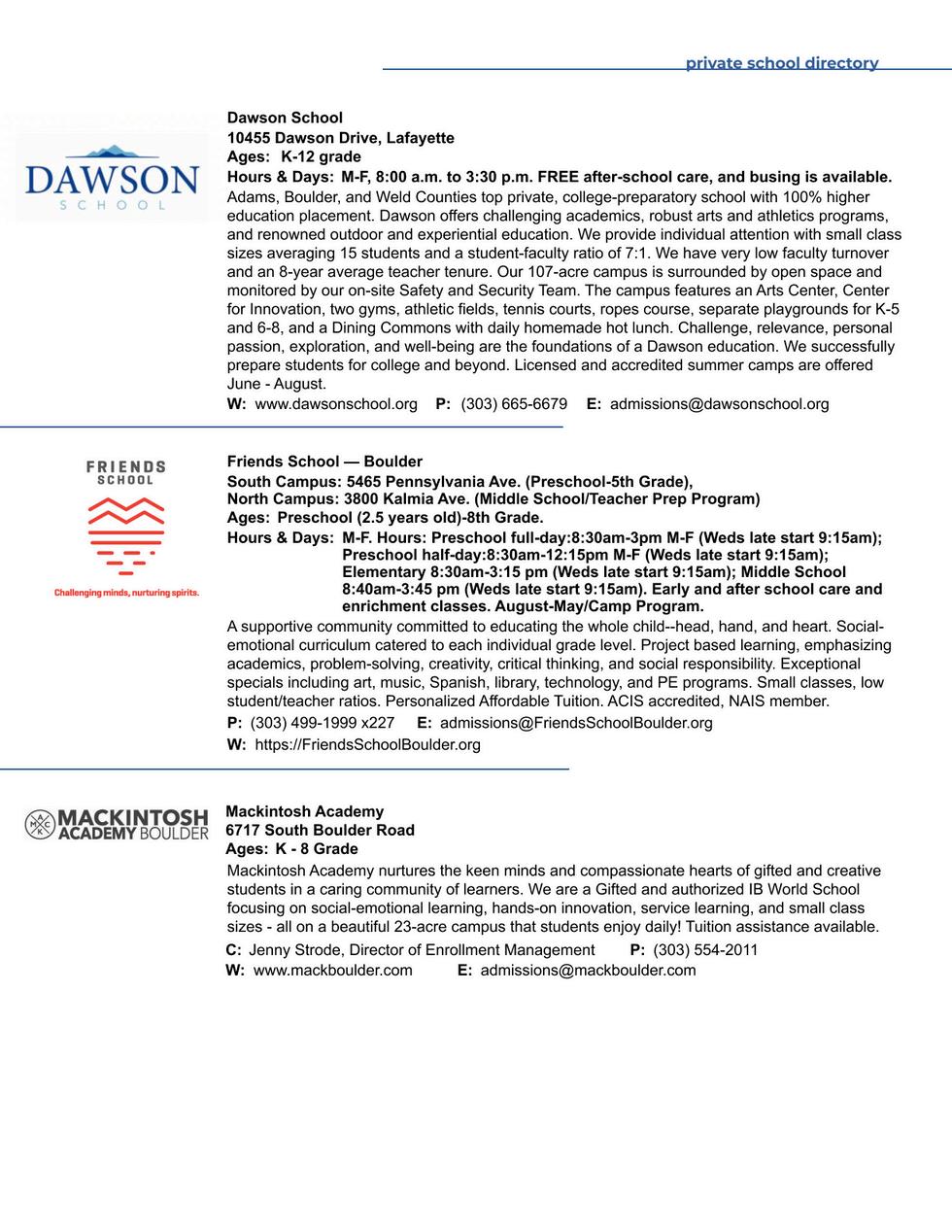 BOULDER COUNTY KIDS is a division of Martin House Publications, Inc Published quarterly in February, May, August, and November