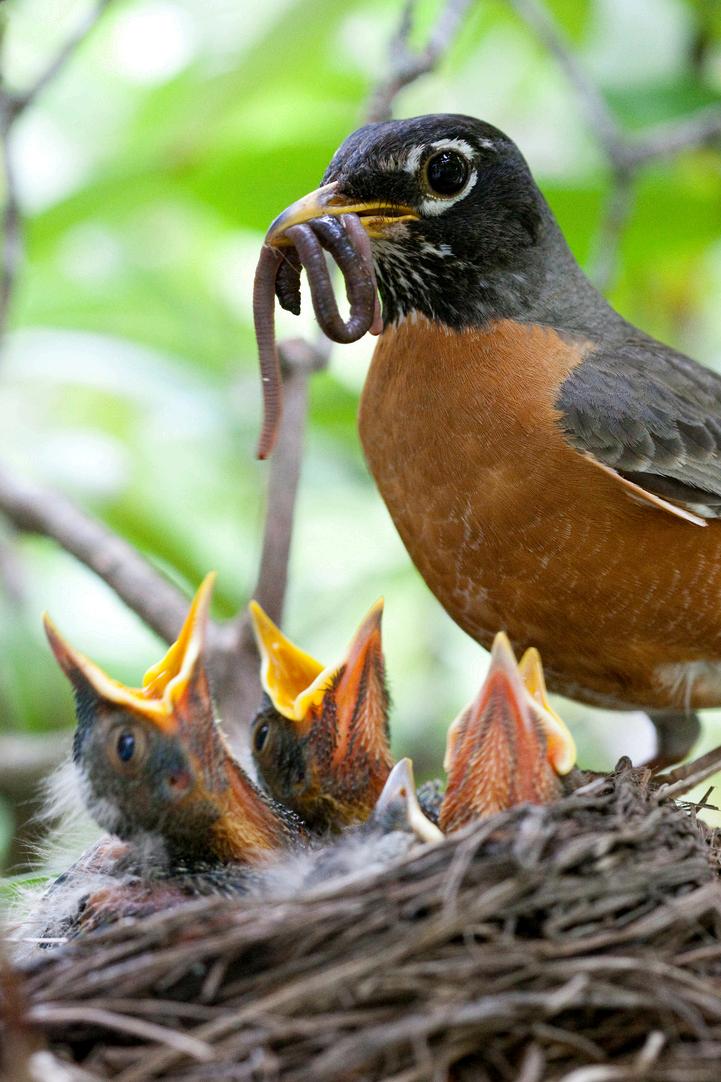 I would usually look for the first American Robin to appear on our newly green lawn, cocking its head to listen for worms moving in the ground. It would soon pull out a luscious long worm for a good breakfast meal. A spring rain helps to bring the worms closer to the surface of the ground, to the Robin’s delight.