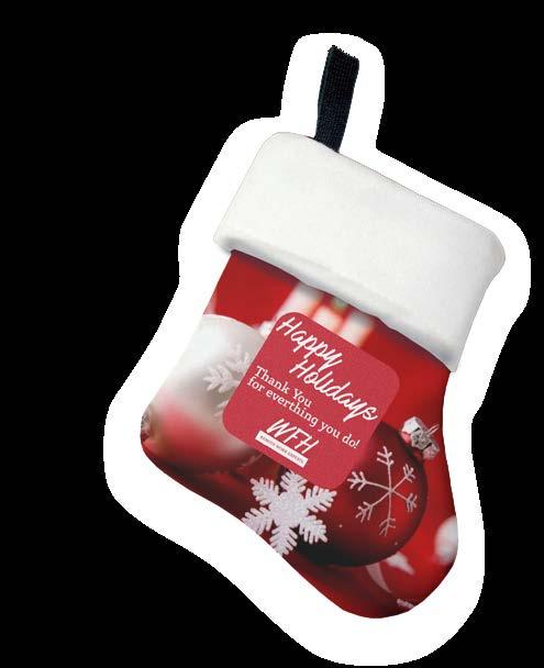 The Merry Christmas Stocking is a must have for every year-end giveaway. This quality Christmas stocking features full-colour holiday images and logo or your own design sublimation printed. Optional personalization available with names of all your favourite elves!