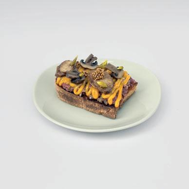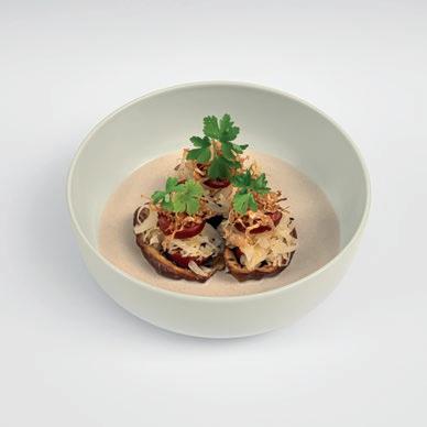 Parafráze na klasické dušené na houbách, tentokrát ale v puristicky vegetariánském provedení z karfiolu a zeleninového glazé. Dá se vyrobit také z květáku vlašského — brokolice — nebo květáku římského — květolice, brokotáku, romanesca. Pokrm je určen všem škarohlídům, co nevěří, že mohu přežít dvě hodiny bez masa. A to přitom není vůbec žádná pravda!