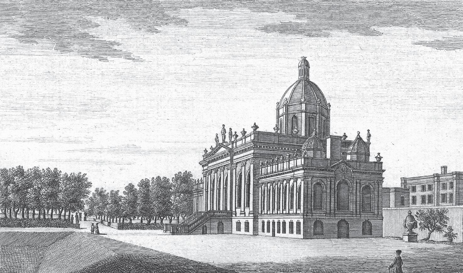 Unusually for an English country house, Hovingham Hall is situated in the centre of a village, a charming stonebuilt settlement on the edge of the North York Moors. Another unusual – possibly unique – feature is that one enters the house through the Riding School. Devoted equally to horses and architecture, Thomas Worsley built the house for himself between 1750–1770 (his descendants still live here). The result, though eccentric, is a noble compendium of classicism from the Age of Elegance.