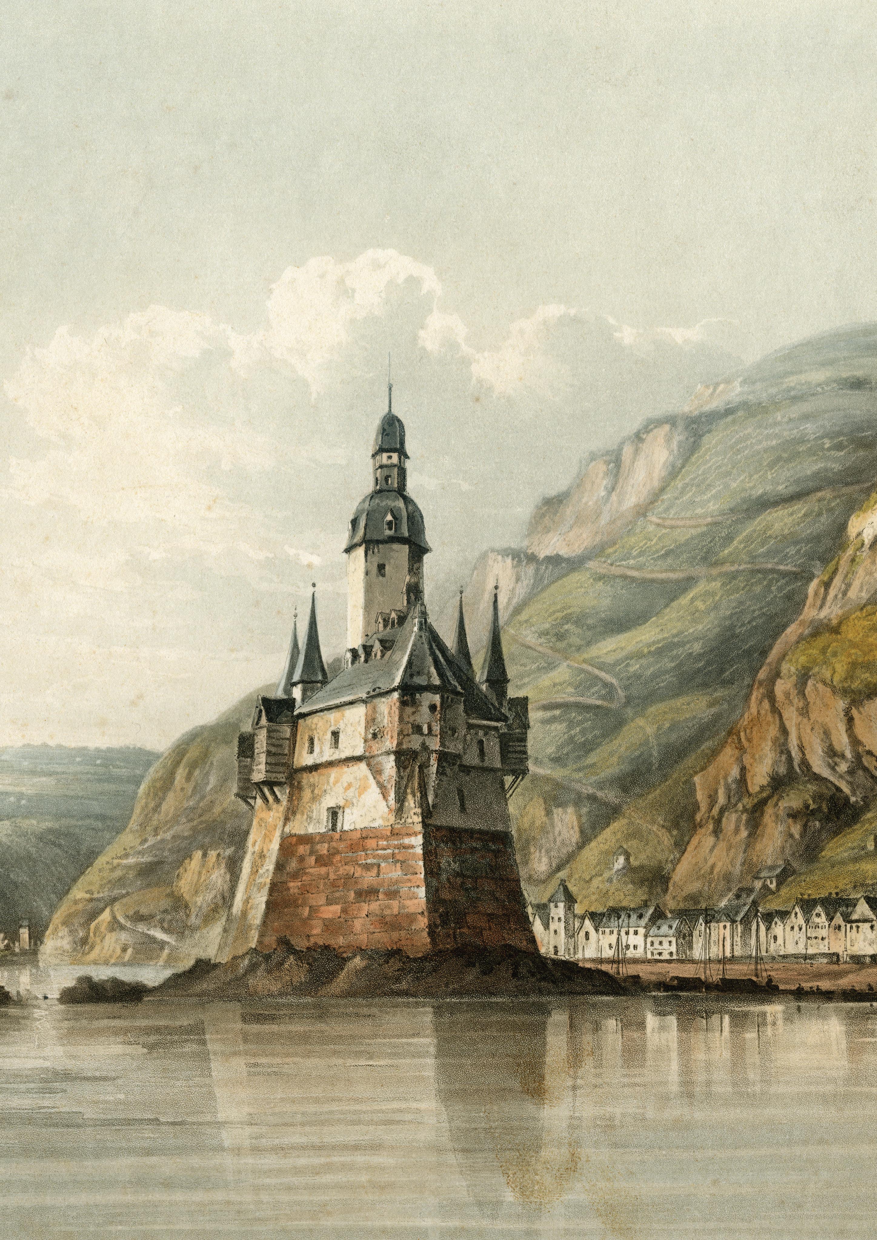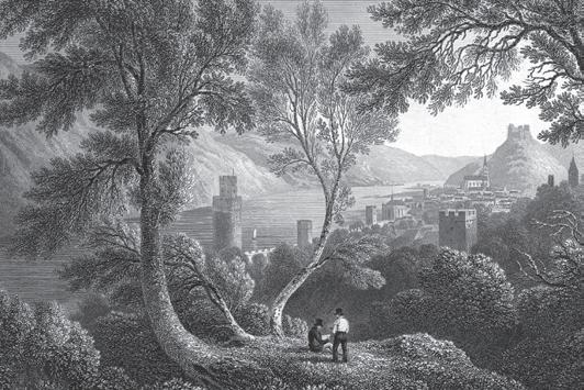 The Rhine at Oberwesel, engraving by Captain Robert Batty 1825.
