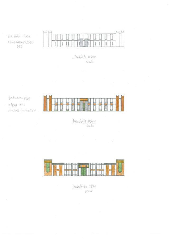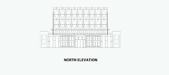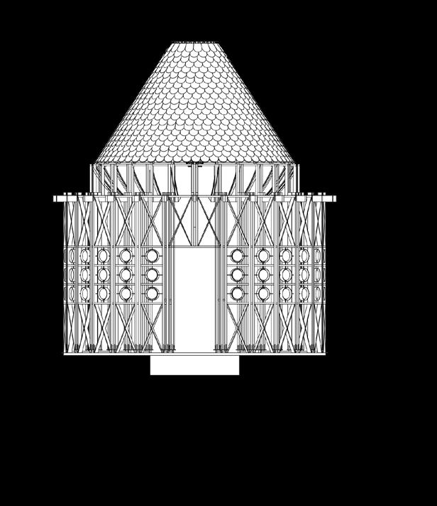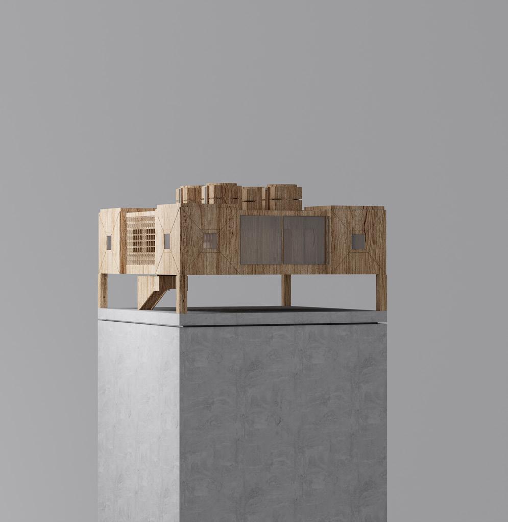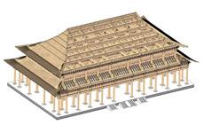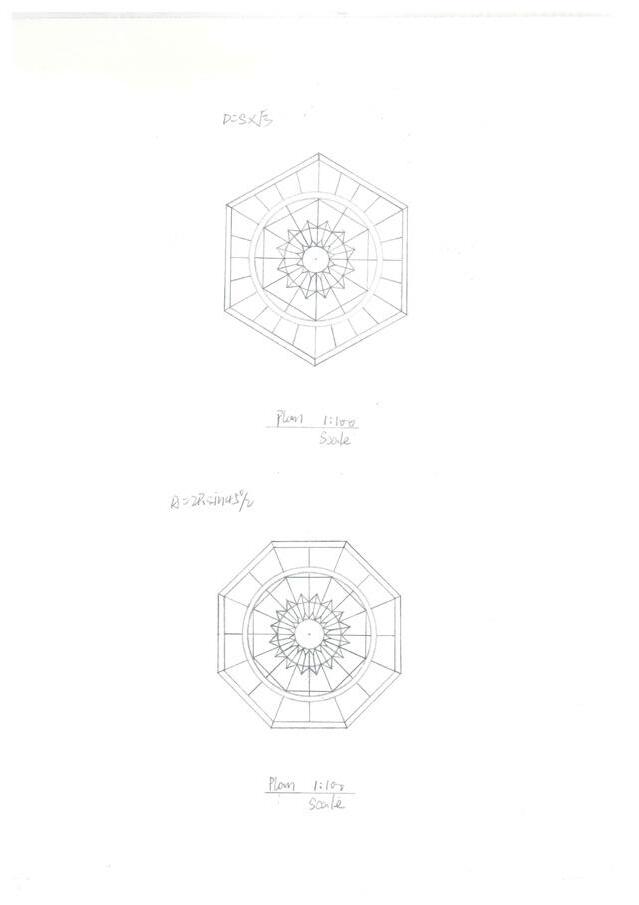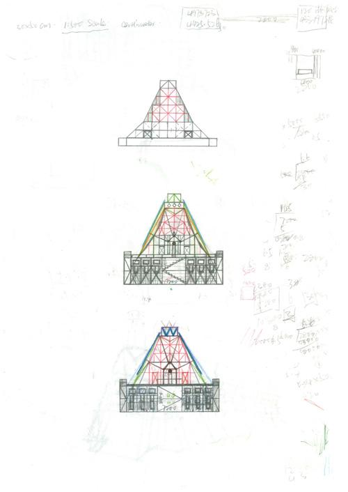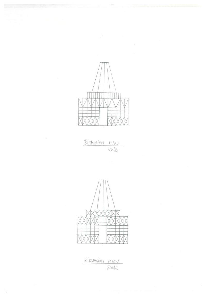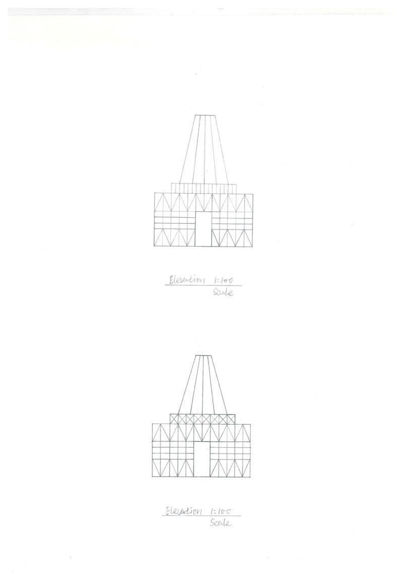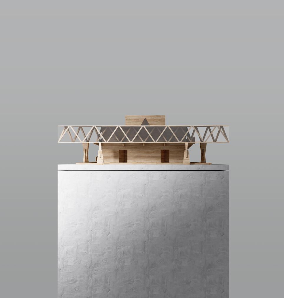 Through the intervention of the golden ratio, the proportional relationship between the roof and the building body is first transformed, and then adjusted again to achieve a more harmonious proportion between the roof and the whole. At the same time, the basic concept of single diagonal frame and leaked view of the building body is introduced, and the basic relationship between the bottom of the building and the viewer's sitting perspective is established.