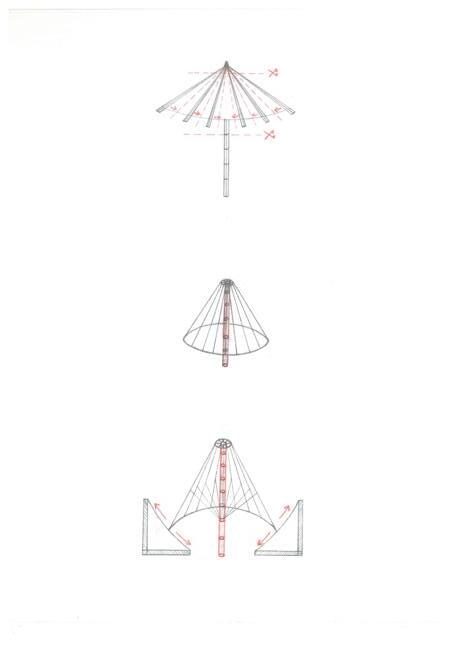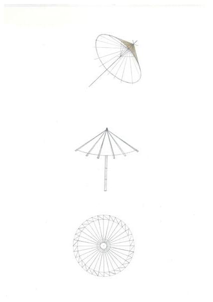 1. Through the analysis and deconstruction of traditional oil-paper umbrellas, it can be found that the movable/shrinkable umbrella structure has the essential characteristics of architecture, as a shelter.