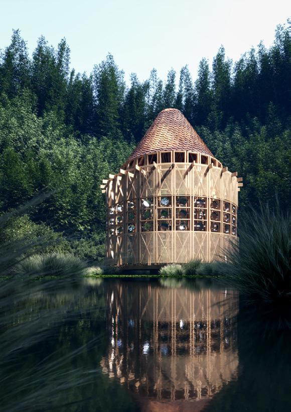 ‘Reframing—Reading between the lines’ is a visionary project that reimagines a traditional Chinese pavilion structure in Lion Grove Garden, Suzhou, composed of 525 wooden components, 78 polished steel double-sided reflectors, and 1 hollowed-out central copper shaft.