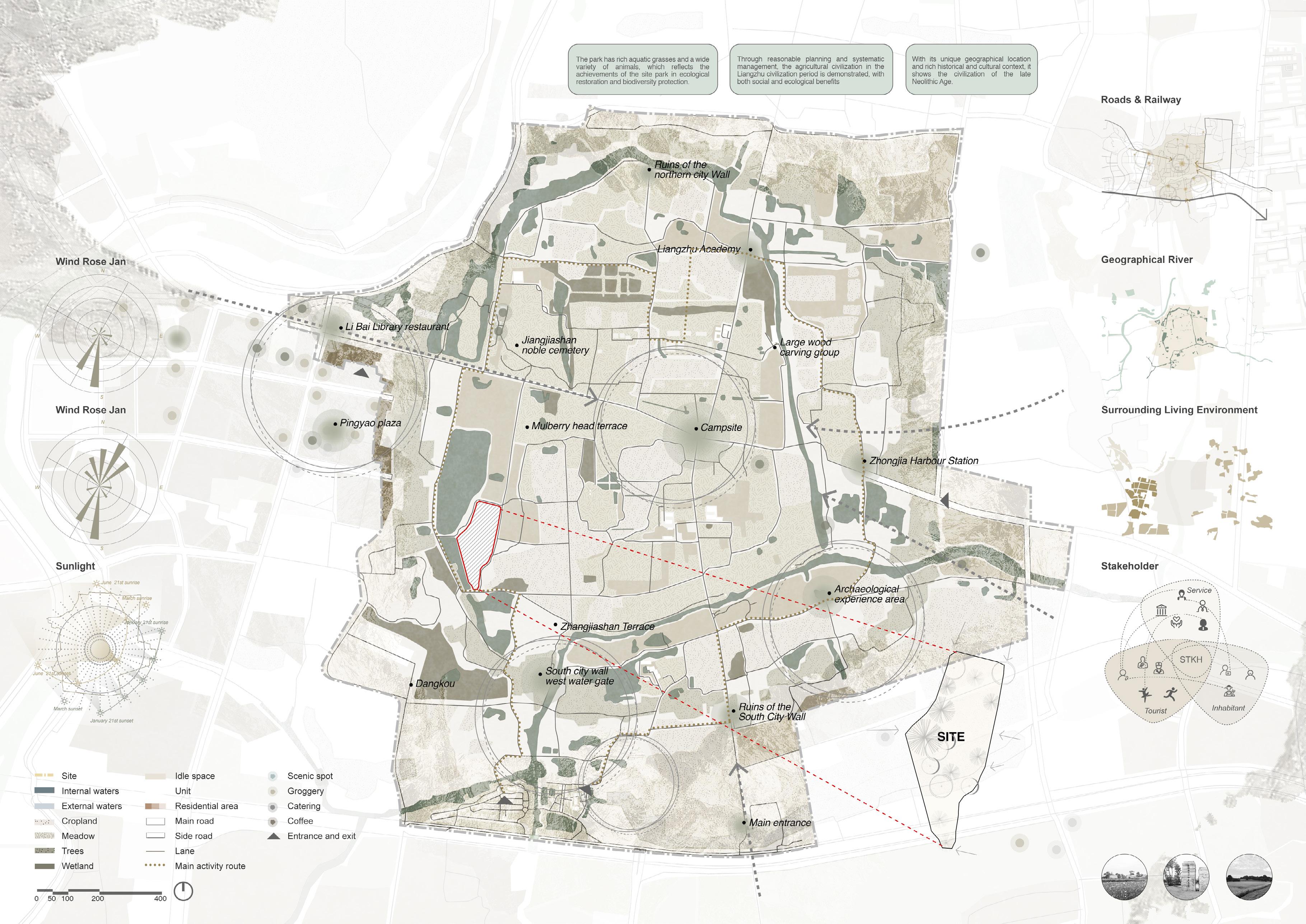 Liangzhu Ancient City Site Park, with the ancient city site as the core, integrates the natural landscape and cultural heritage. The river network in the park is dense, the water system is developed, like a water city, reflecting the wisdom of Liangzhu ancestors to use and transform the wetland environment.