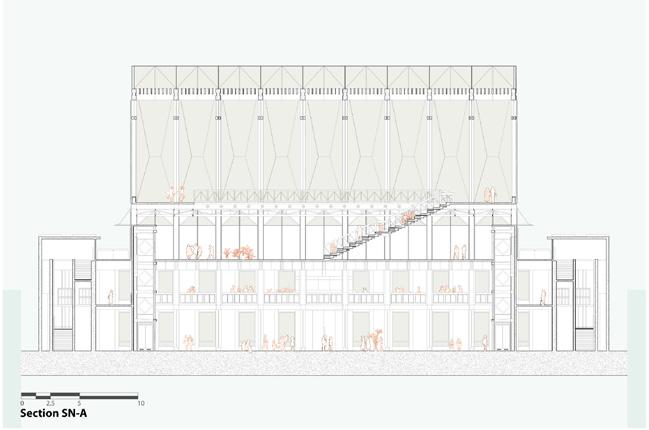 Through the establishment of the architectural proportion relationship of the above three groups and the in-depth transformation of the framing method, the concept of borrowed scenery was once again deepened in the middle layer of the main building, forming a new architectural relationship with the viewer's horizontal perspective, and laying a solid theoretical and construction foundation for the overall concept, facade and space.