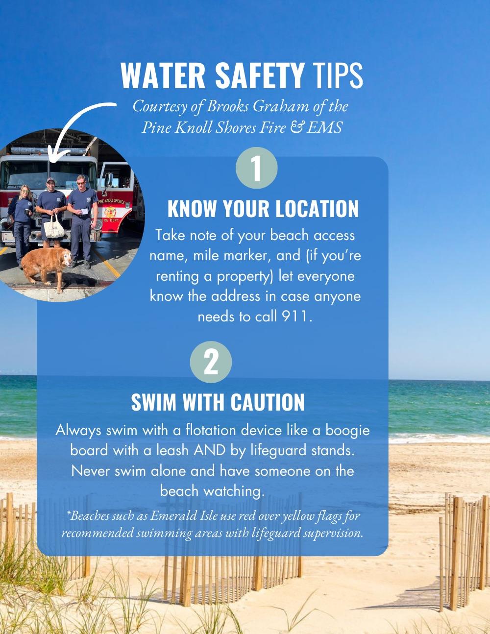 There’s not much better than enjoying a day on the Crystal Coast! Basking in the sun with toes in the sand and taking in the view of our pristine beaches is one of the most enjoyable things about living here. But, we know that there are always safety precautions when it comes to the ocean. We reached out to local firefighter, Brooks Graham of the Pine Knoll Shores Fire and EMS, to help us gather water safety information so we can share our Water Safety Guide with you!