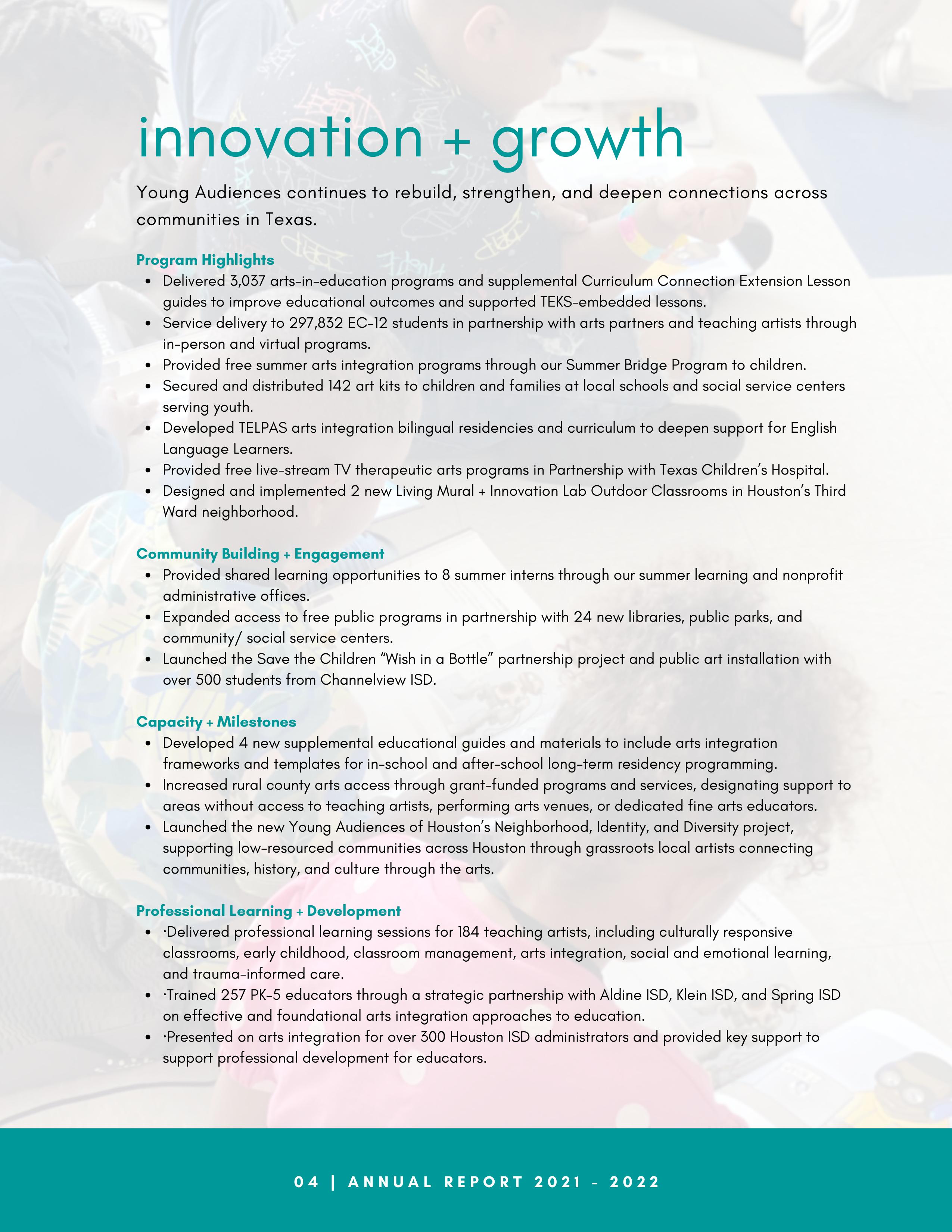 Young Audiences of Houston - Annual Report, 2021-2022 by Young Audiences, Inc. of Houston - Issuu