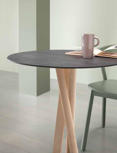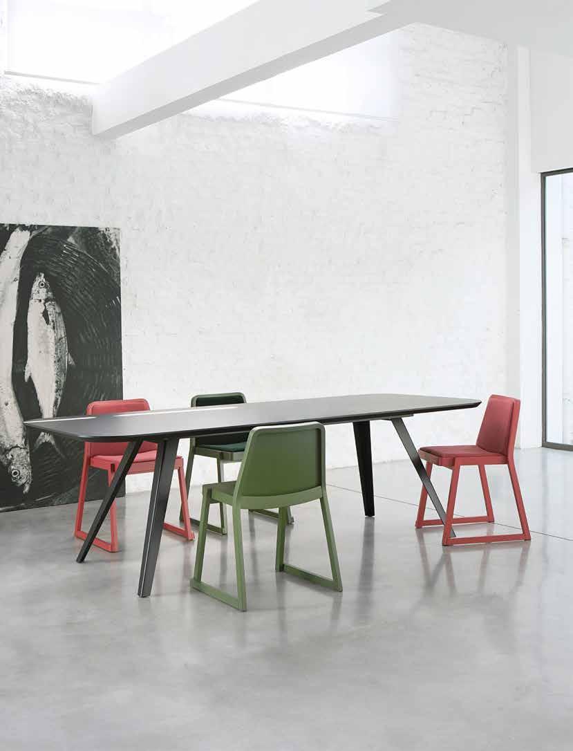 Aky, solid and with a rounded shape, interprets the paradigm of the table: pleasant, robust and suitable for work, sharing and conviviality.