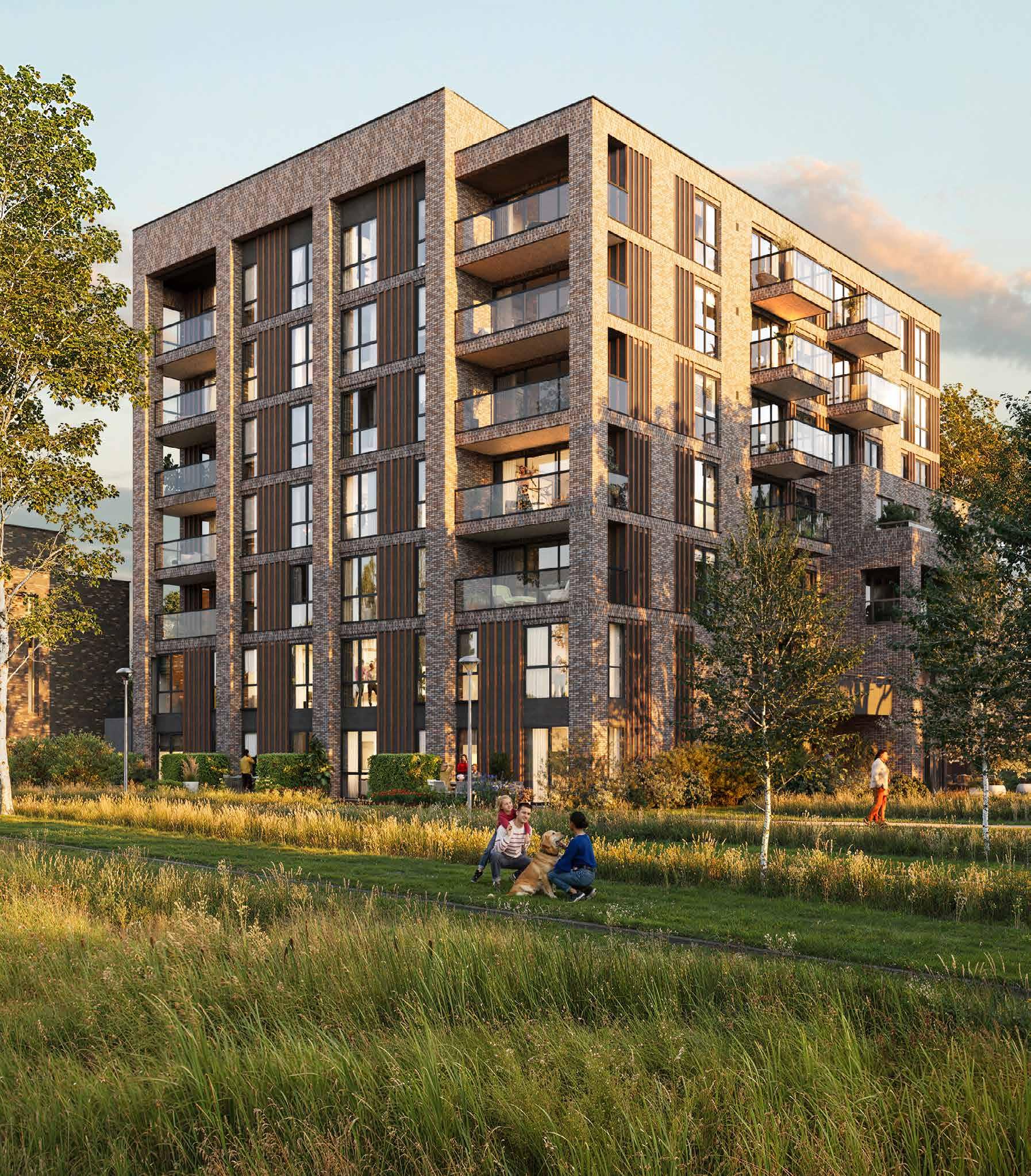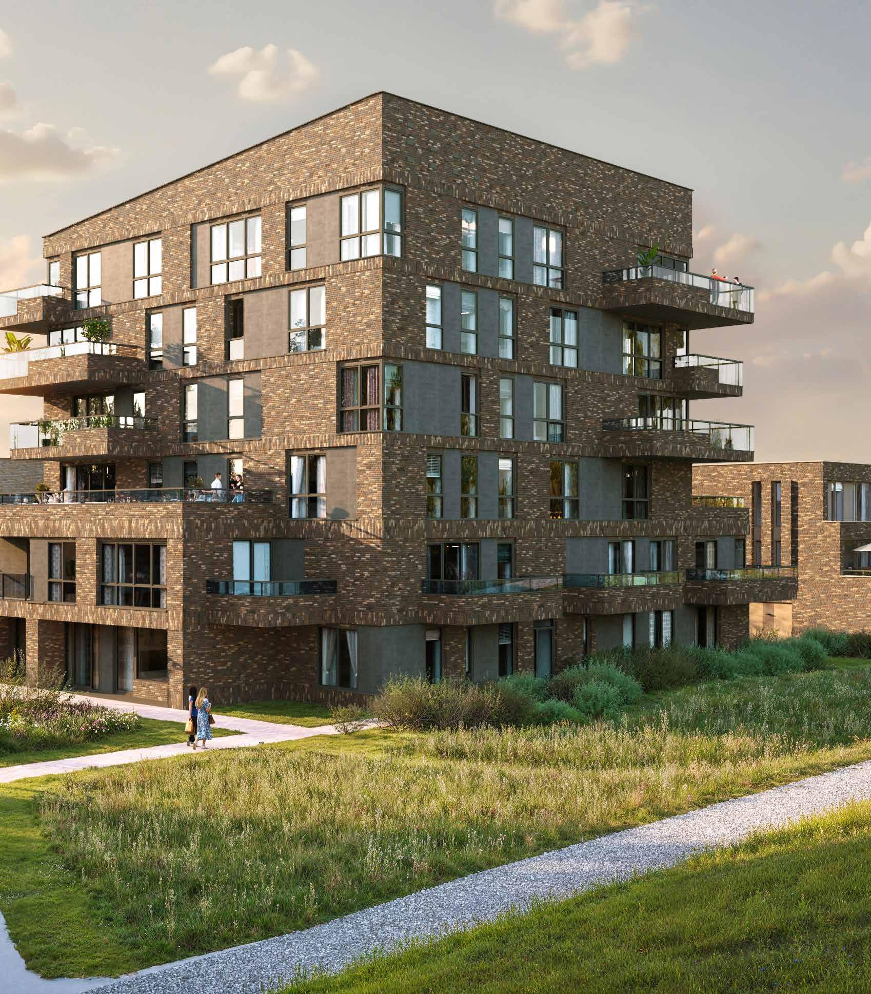 De appartementengebouwen vormen de eerste fase van Nieuw Harculo. Ook hofwoningen, stadswoningen, dijkwoningen en parkvilla’s krijgen hier een plek.