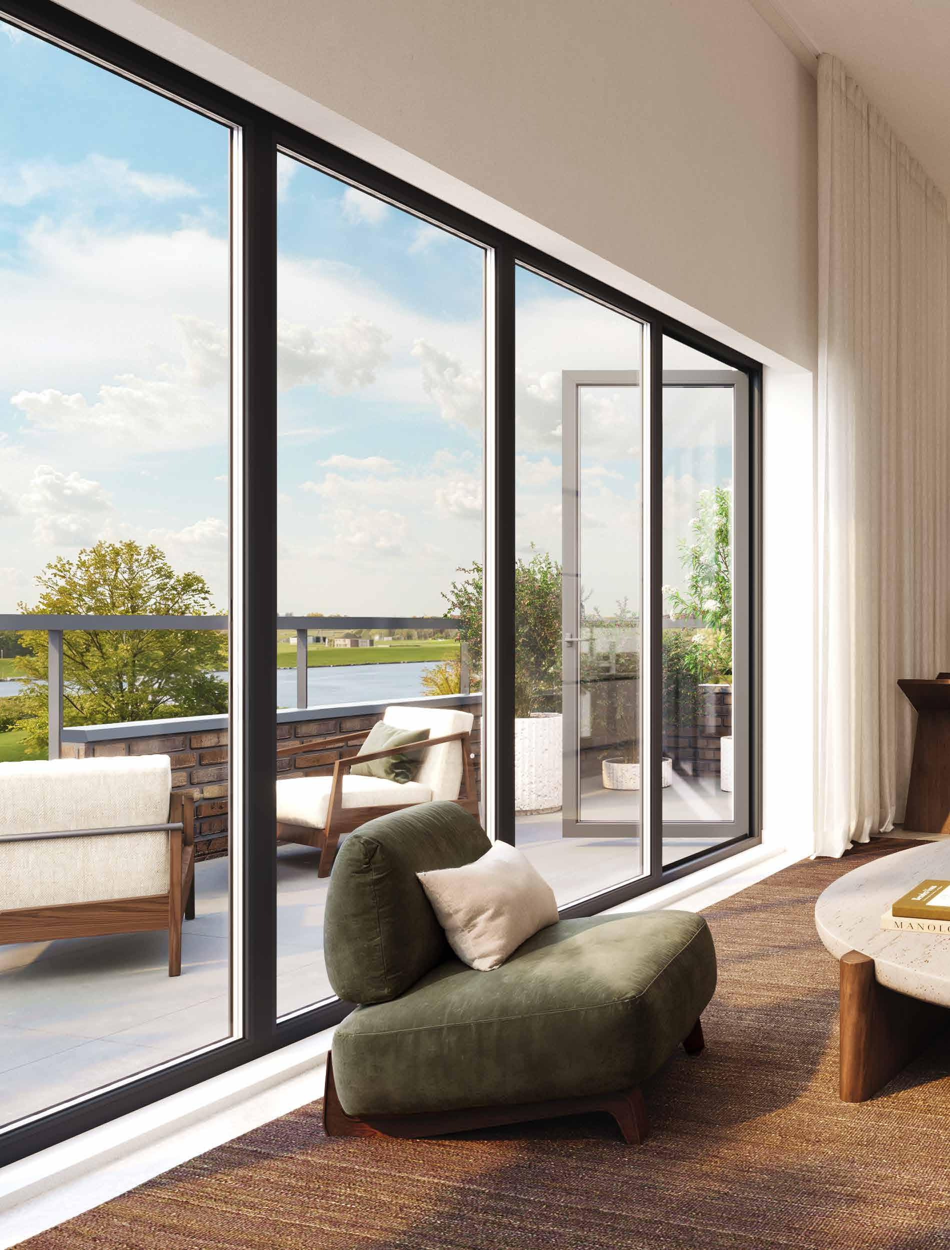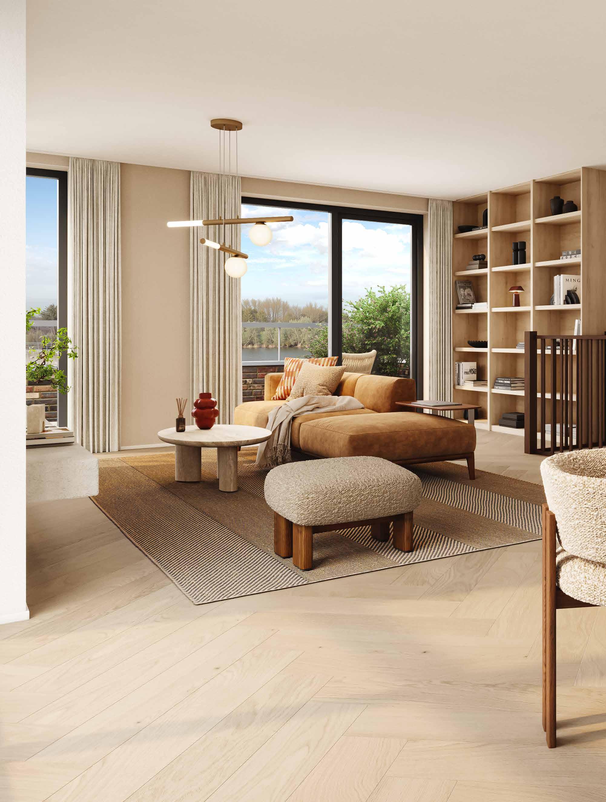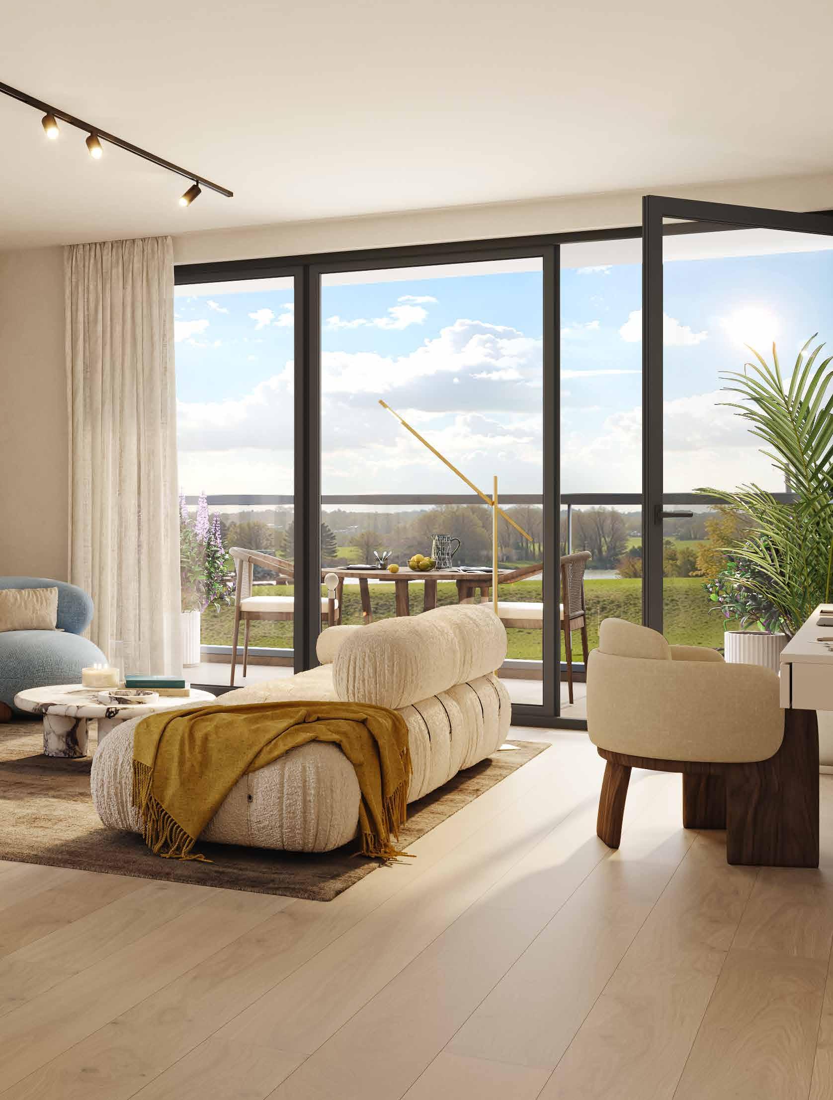 Je woont er comfortabel, met ruime balkons en grote raampartijen die uitkijken over het rivierenlandschap. Er is keuze in woonoppervlakten en aantal kamers.