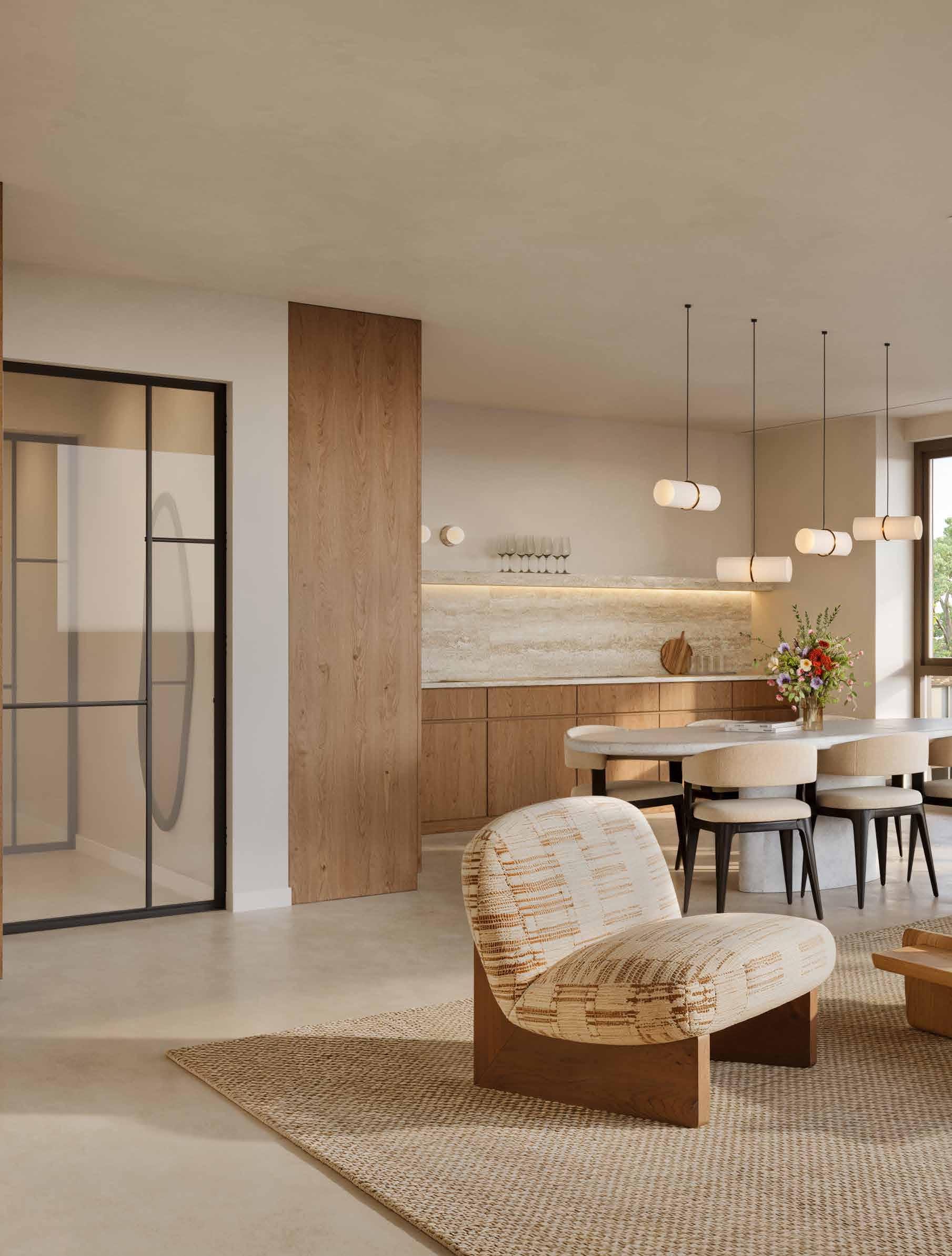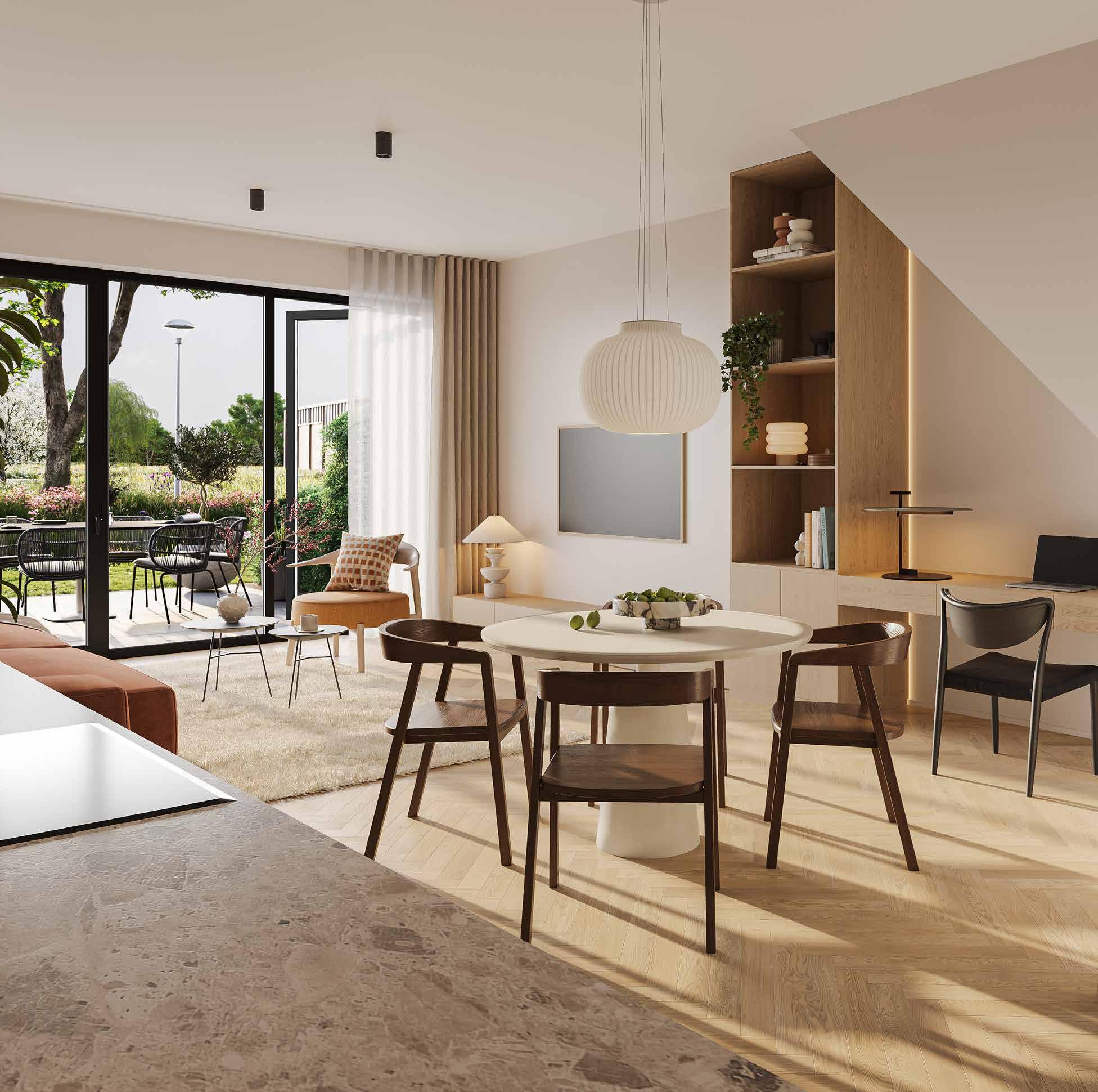 Een luxe badkamer met sanitair van Villeroy & Boch is inclusief. De keuken daarentegen stel je, naar eigen creativiteit en budget, zelf samen. In de zomer zorgt de slimme vloerverwarming voor verkoeling in huis.
