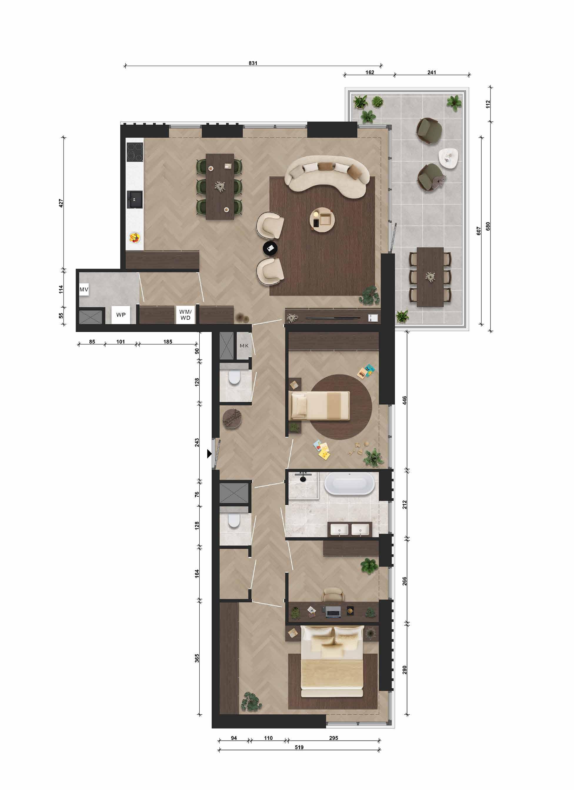 Of je nu kiest voor compact en efficiënt of juist voor een royaal appartement: ruimte en comfort staan centraal