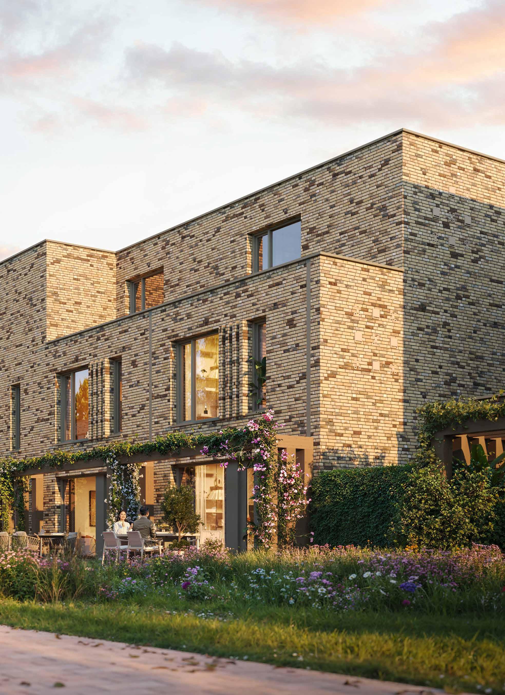Er zijn tien moderne hofwoningen met een woonoppervlakte van ca. 169 m². De iets teruggetrokken gevel op de tweede verdieping maakt het ontwerp extra levendig. Hoge raampartijen zorgen dat het licht tot diep in huis doordringt. Pergola’s bieden beschutting. Er is keuze tussen een hoek- of een tussenwoning.