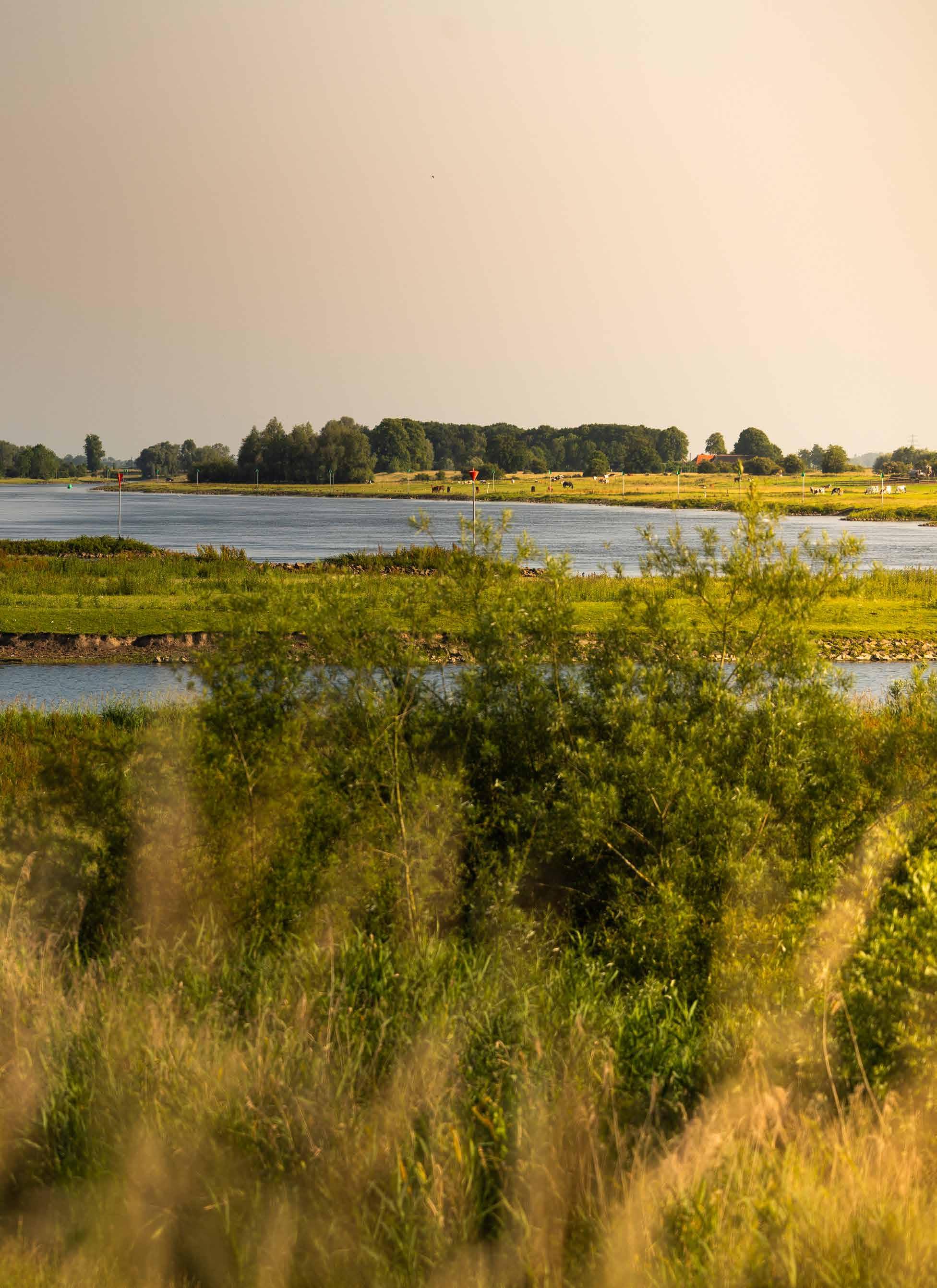 Vanaf huis wandel je zo de dijk op. Je kijkt uit over de uiterwaarden en ziet de beroepsvaart rustig voorbijtrekken, terwijl wandelaars en natuurliefhebbers over de dijk lopen.