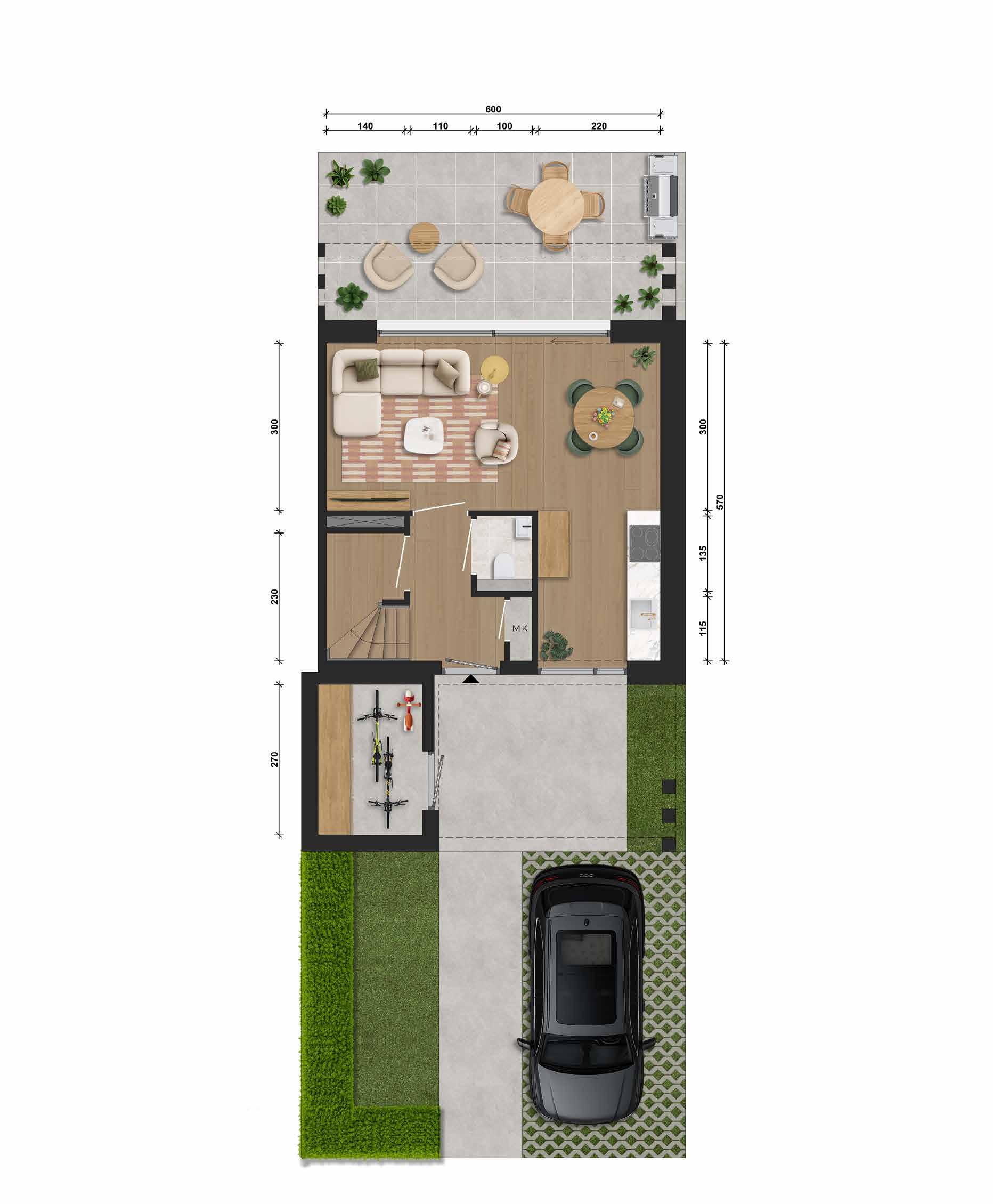 TWEELAAGSE HOFWONINGEN (CA. 72 M²)