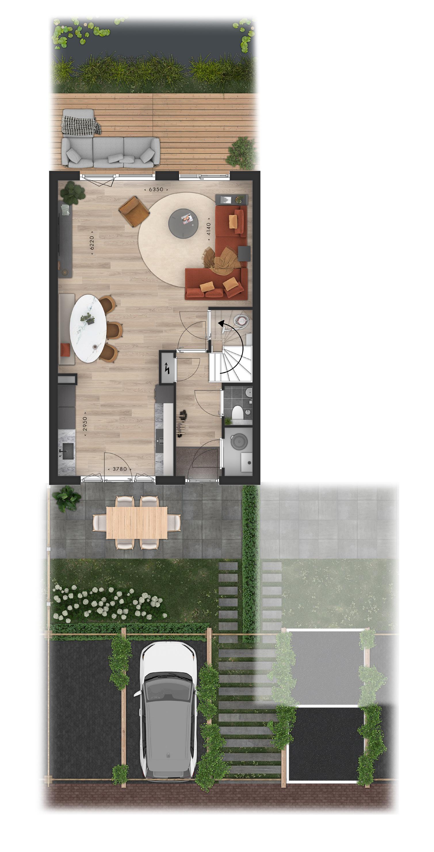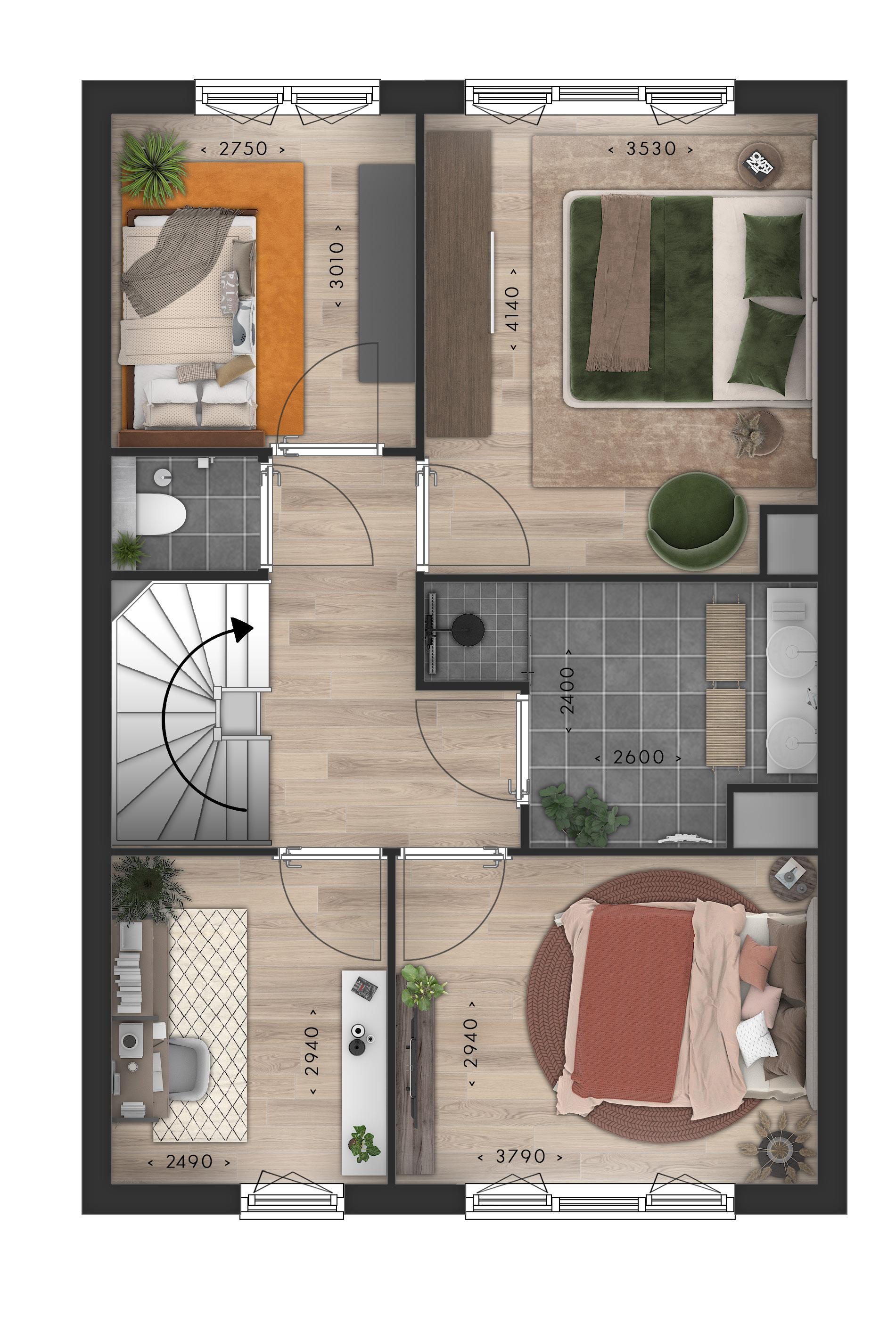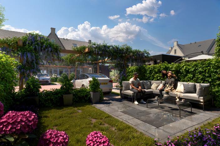 Alle perspectieftekeningen en afbeeldingen in deze brochure geven een impressie weer en dienen als illustratie. Ondanks alle zorgvuldigheid die we hebben nagestreefd, kunnen aan deze tekeningen en afbeeldingen geen rechten worden ontleend. De afbeeldingen komen van de hand van een illustrator en worden daarom met recht ’artist impressions’ genoemd. De werkelijke kleuren van de gevels, schilderwerk en dakbedekkingen kunnen hiervan afwijken. De plattegronden, alsmede de afmetingen van sanitair en keuken van alle in deze brochure opgenomen woningen zijn indicatief. Hier is dus geen leveringsplicht aan verbonden. Deze brochure maakt geen deel uit van de contractstukken. November 2025.