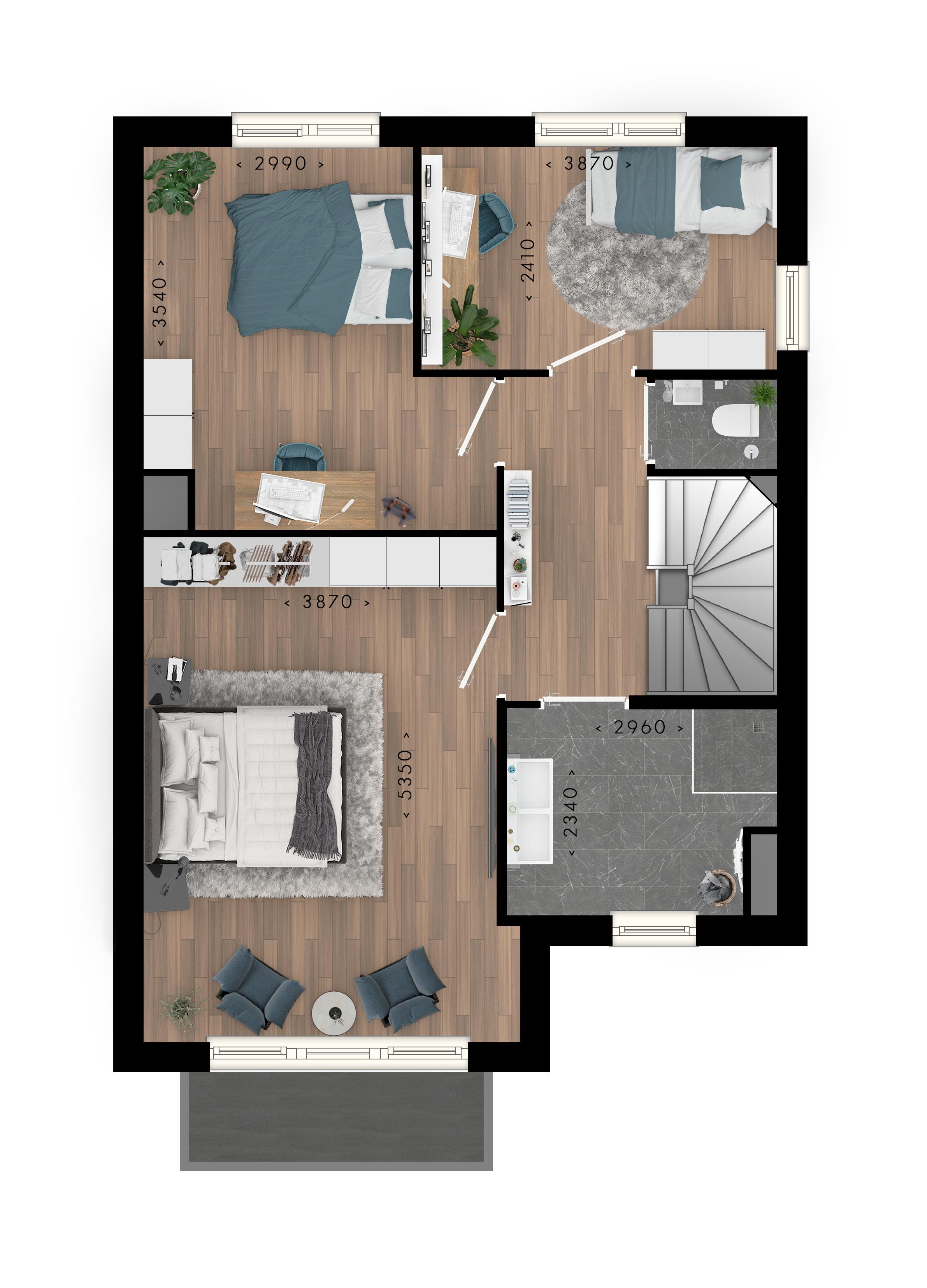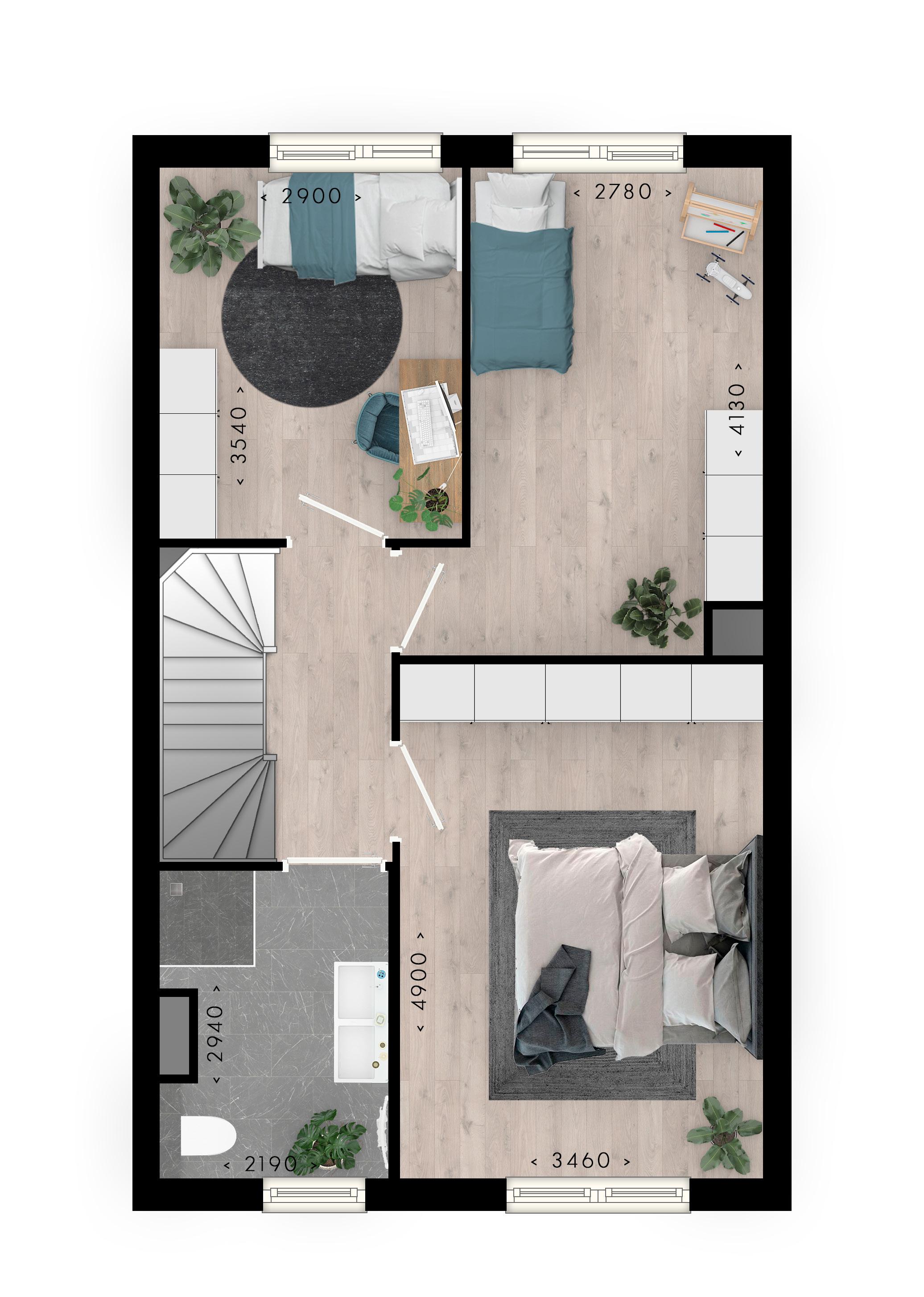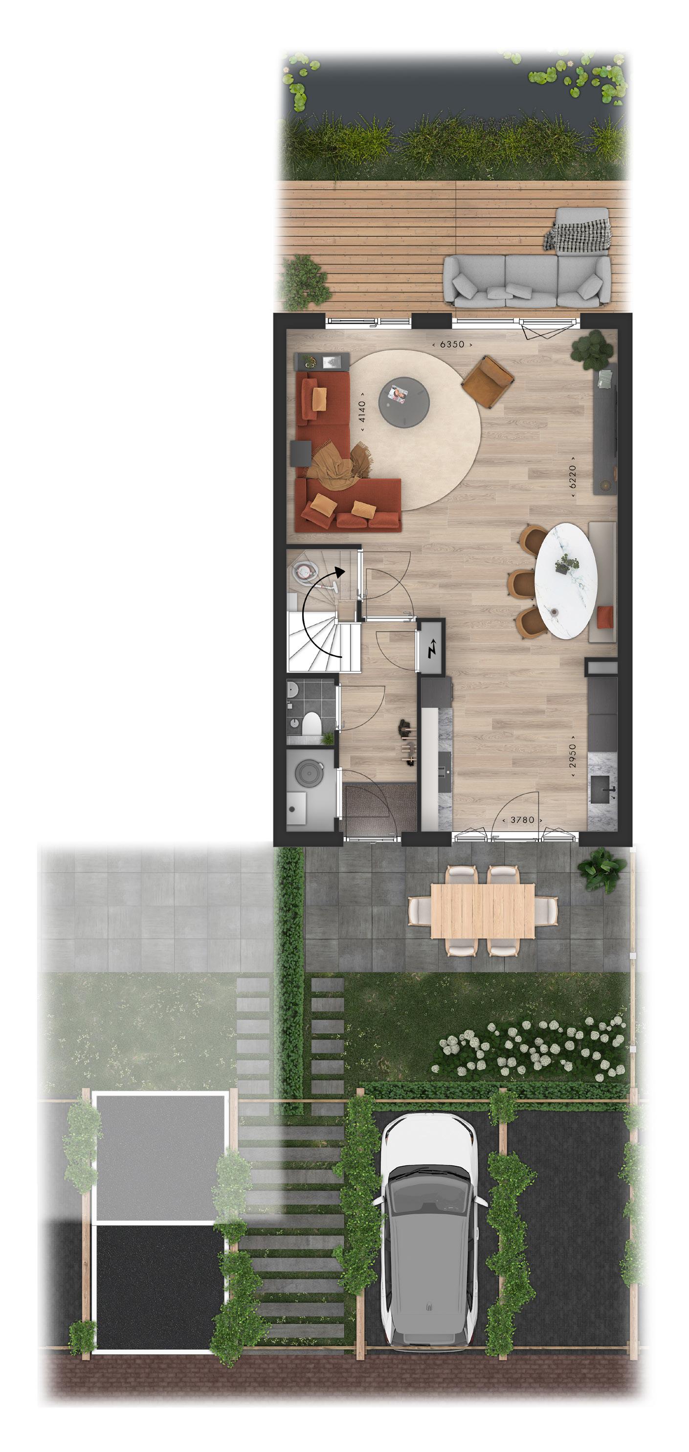 Alle perspectieftekeningen en afbeeldingen in deze brochure geven een impressie weer en dienen als illustratie. Ondanks alle zorgvuldigheid die we hebben nagestreefd, kunnen aan deze tekeningen en afbeeldingen geen rechten worden ontleend. De afbeeldingen komen van de hand van een illustrator en worden daarom met recht ’artist impressions’ genoemd. De werkelijke kleuren van de gevels, schilderwerk en dakbedekkingen kunnen hiervan afwijken. De plattegronden, alsmede de afmetingen van sanitair en keuken van alle in deze brochure opgenomen woningen zijn indicatief. Hier is dus geen leveringsplicht aan verbonden. Deze brochure maakt geen deel uit van de contractstukken. November 2025.