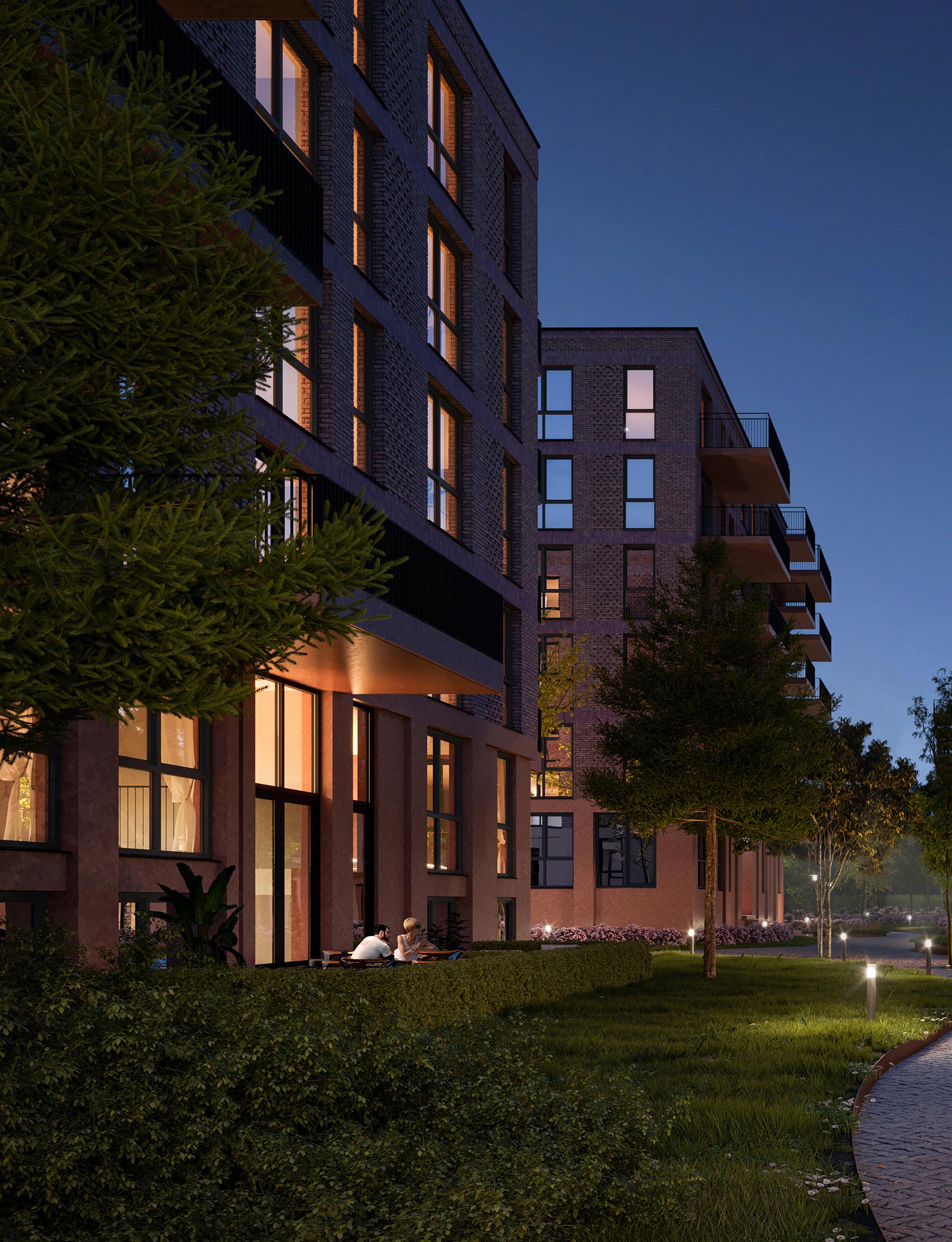 • Chique ensemble van woongebouwen in het groen