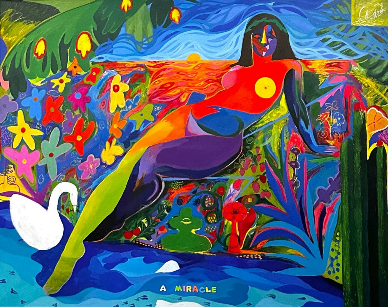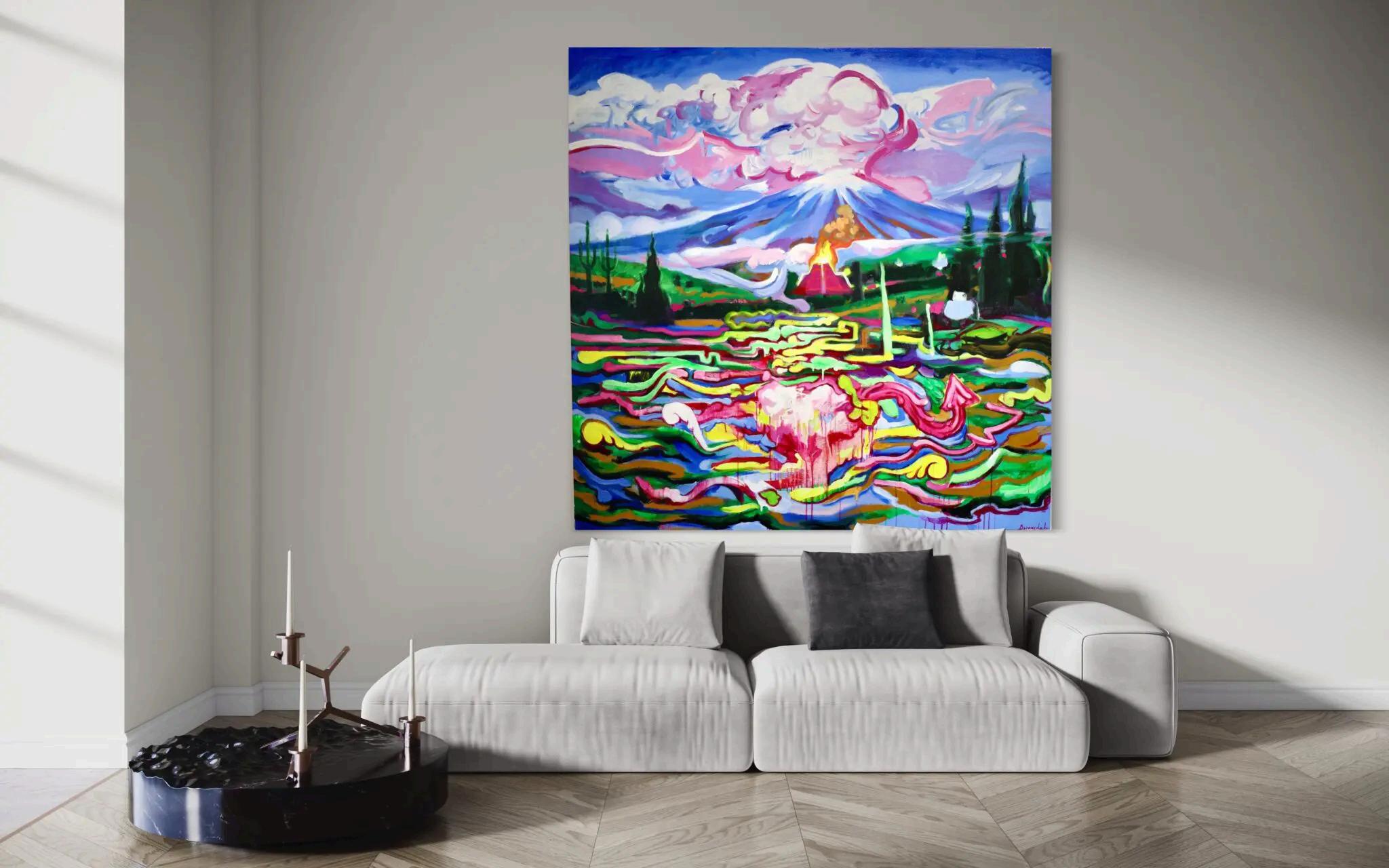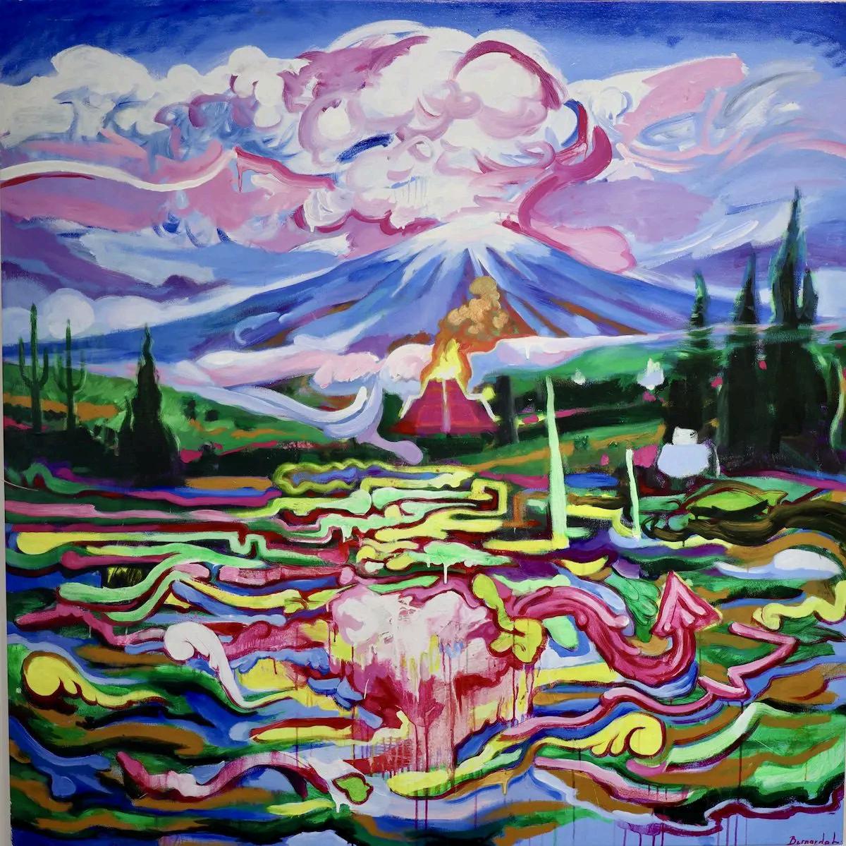 52 X 58 IN ACRYLIC, OIL, PASTEL AND SPRAYPAINT