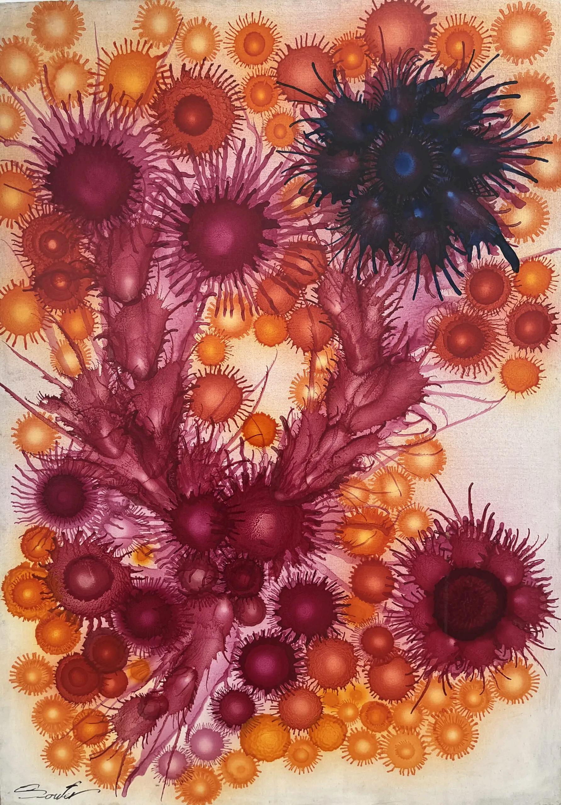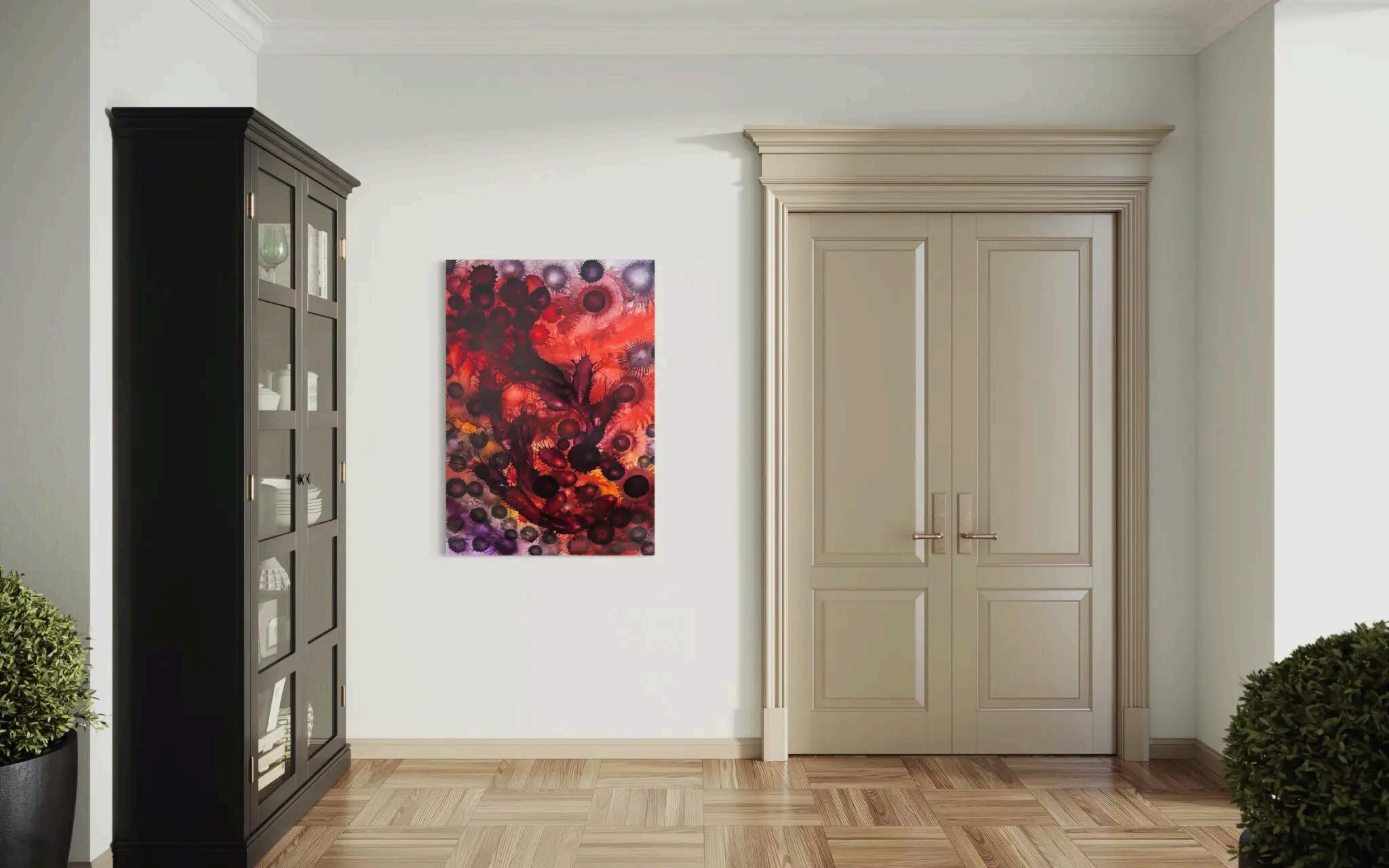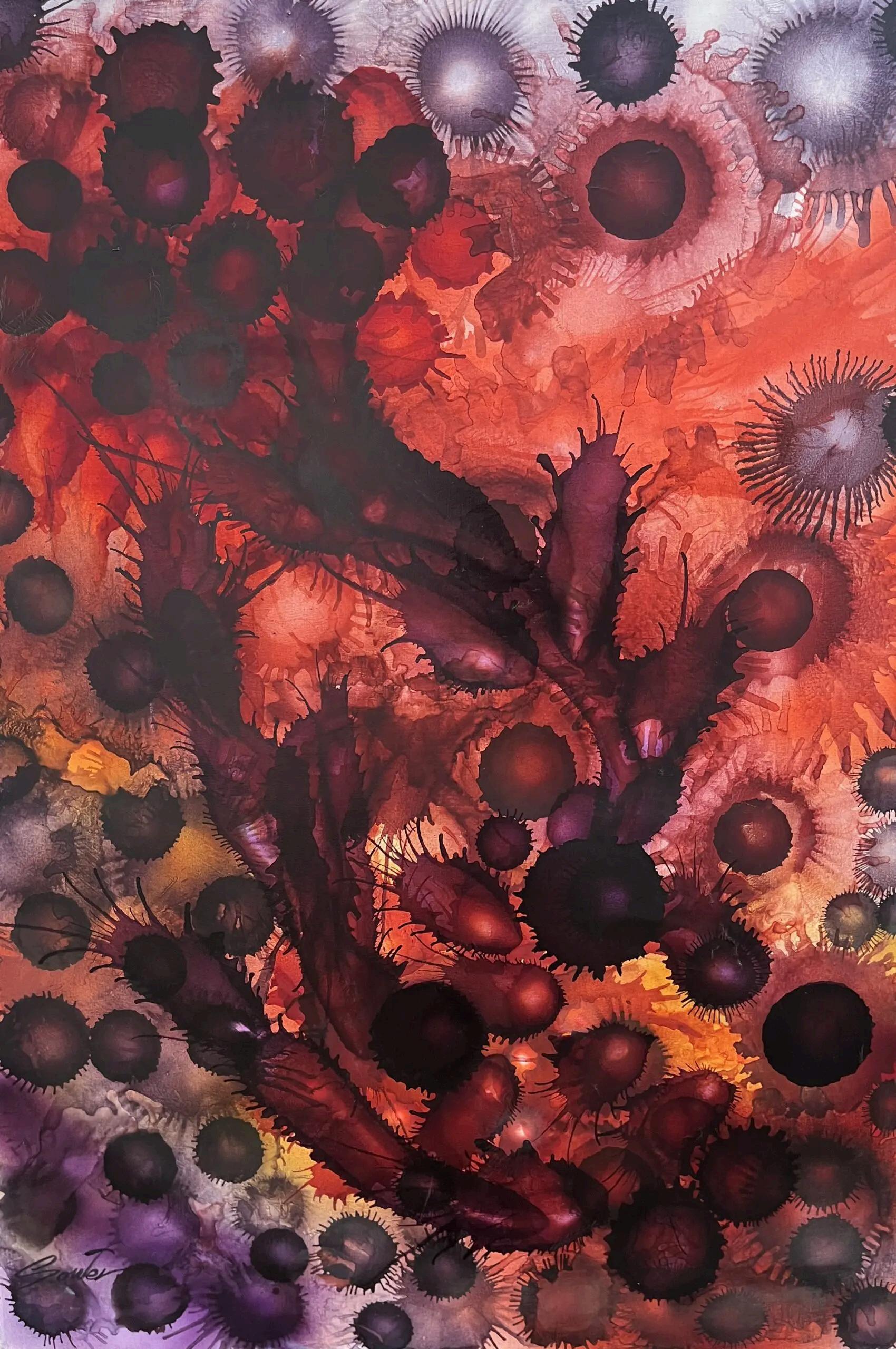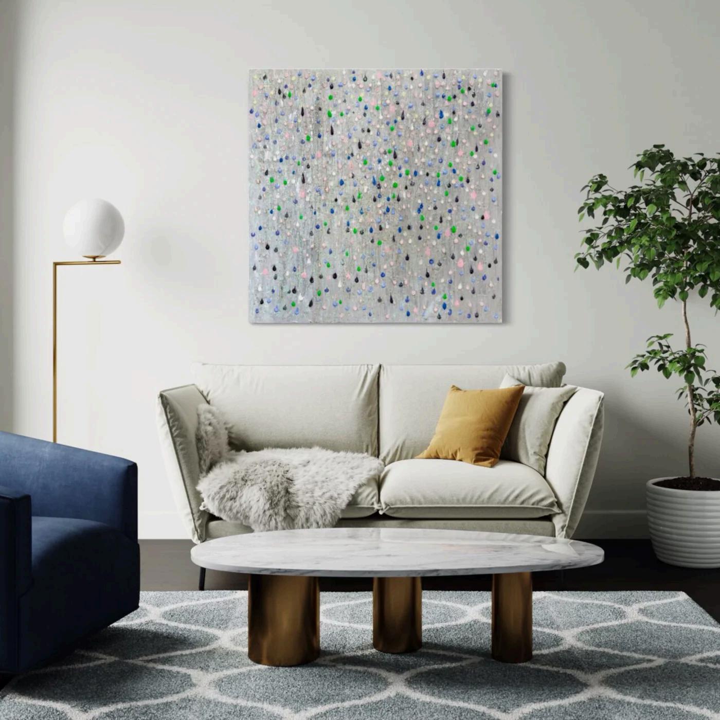 48 X 48 IN ACRYLIC, OIL AND PASTEL