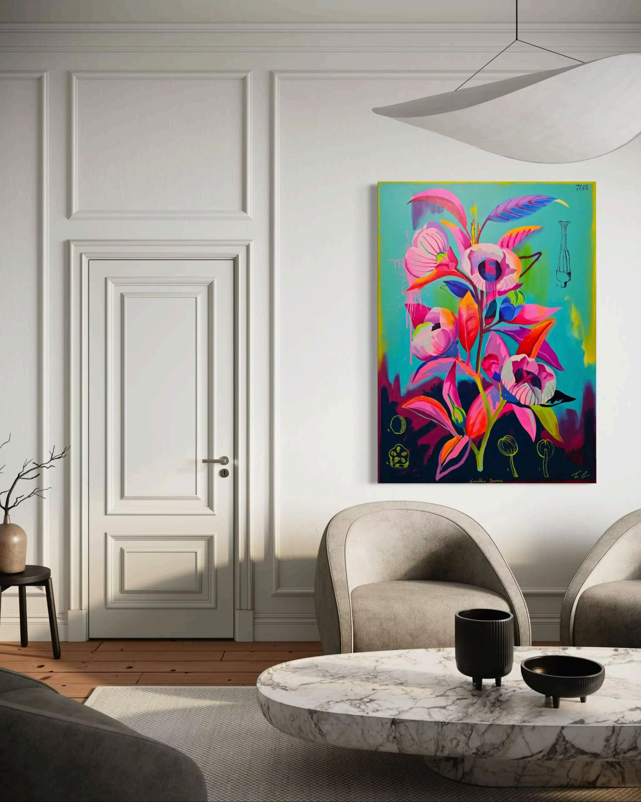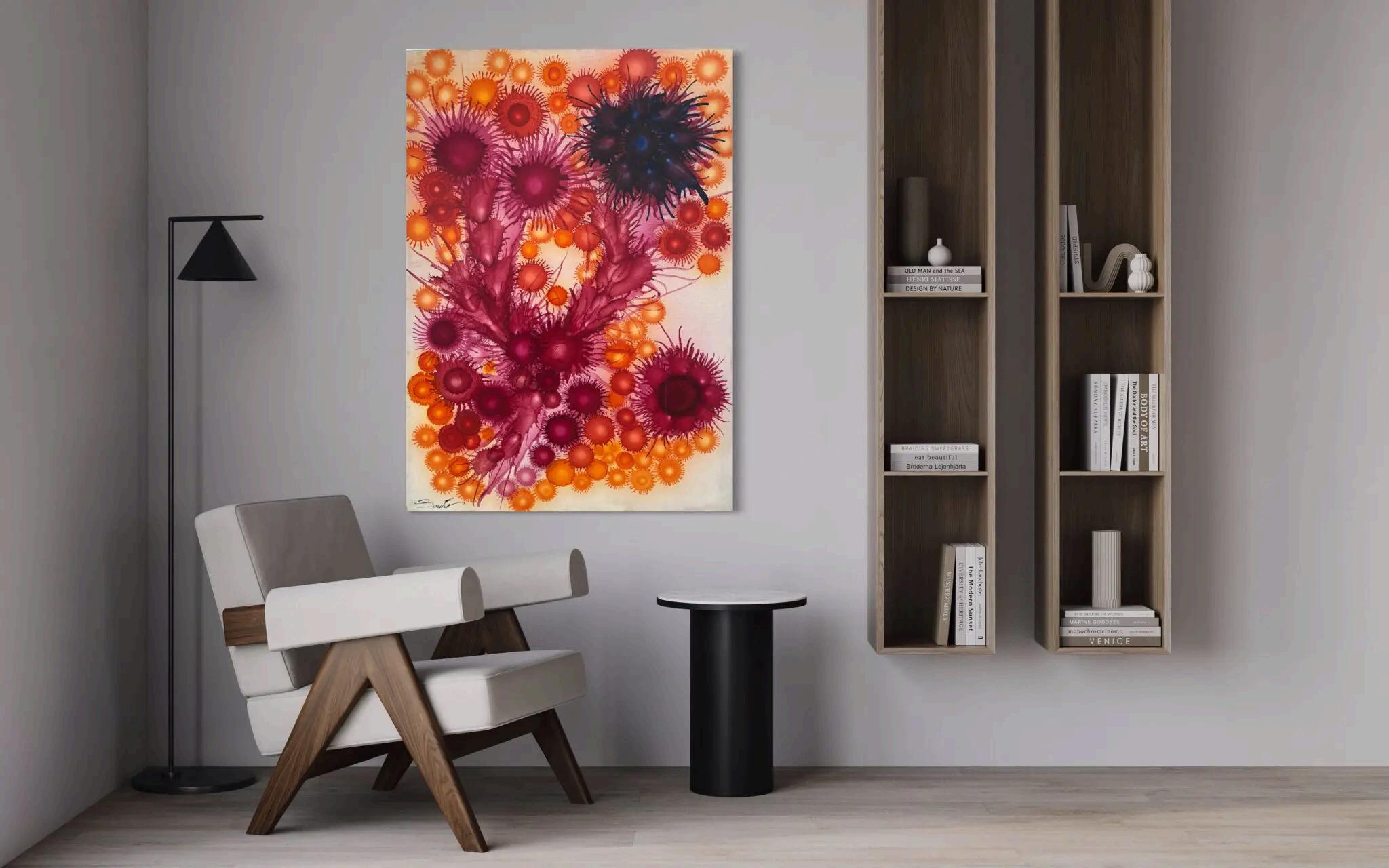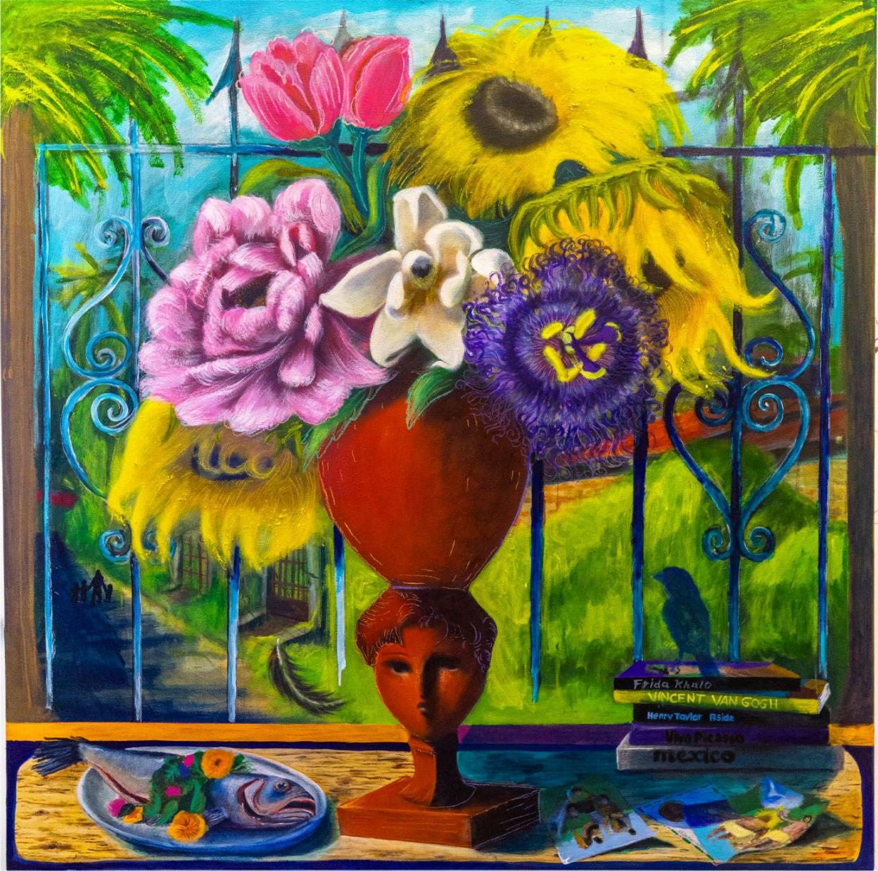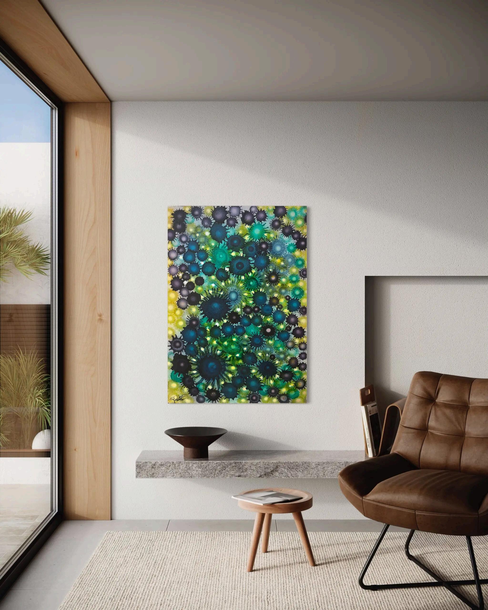 48 X 48 IN ACRYLIC, OIL AND PASTEL