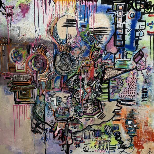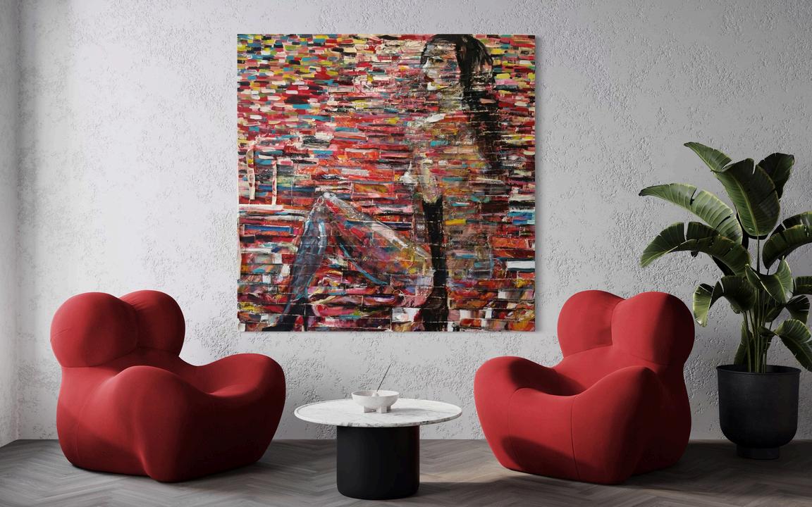 “I'M COMFORTABLE” OIL ON SPATULA AND BRUSH, IN COTTON FABRIC, UV FREE