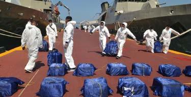 la inspección, los marinos localizaron 54 bultos tipo costalilla, dentro de los cuales se hallaron mil 600 paquetes con cocaína.