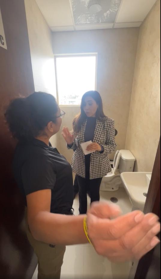 Flores Guerra fue localizada en el interior de los sanitarios del juzgado, donde permaneció por casi una hora tras ser informada de la orden. Durante ese lapso transmitió en vivo a través de sus redes sociales, acusando al Gobierno del Estado de utilizar a las instituciones para ejercer presión política en su contra.