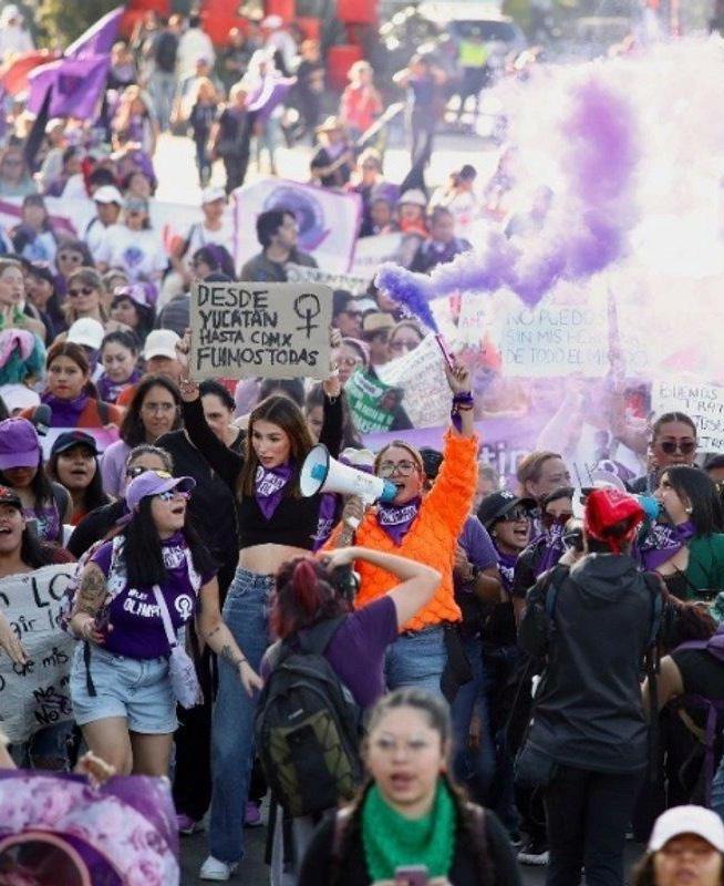 La marcha por el Día Internacional de la Eliminación de la Violencia contra las Mujeres reunió este martes a colectivos feministas, organizaciones civiles, estudiantes, familiares de víctimas y diversas agrupaciones que se movilizaron para denunciar feminicidios, desapariciones, impunidad y múltiples formas de violencia que persisten contra mujeres, niñas y disidencias en México. La jornada, convo-