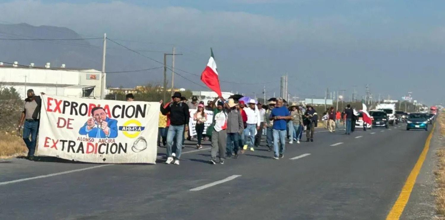 Más de 700 trabajadores de AHMSA continúan con su marcha hacia Saltillo para exigir el embargo de bienes de la empresa