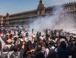 do con vallas metálicas que protegieron Palacio Nacional, la Catedral Metropolitana y edificios públicos cercanos. El cerco estuvo reforzado con bloques de cemento para evitar que fuera derribado. La medida buscó prevenir daños durante la movilización que este año incorporó una fuerte presencia política en apoyo a Palestina y reclamos por la falta de garantías para las mujeres en el espacio público.