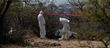 extensión aproximada de 75 metros donde actualmente las autoridades forenses realizan estudios periciales para lograr la identificación de las víctimas y determinar las circunstancias en que