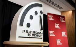 El Reloj del Apocalipsis fue situado en 85 segundos antes de la medianoche, el punto más cercano al fin simbólico del mundo en toda su historia, de acuerdo con el anuncio realizado por el Bulletin of the Atomic Scientists. La decisión refleja el agravamiento de amenazas exis-