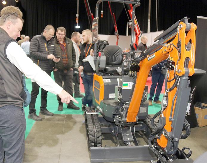 Den blå Develon-minigraver arbejdede problemfrit inde i udstillingshallen i Fredericia. Ingen udstødning og ingen støj.