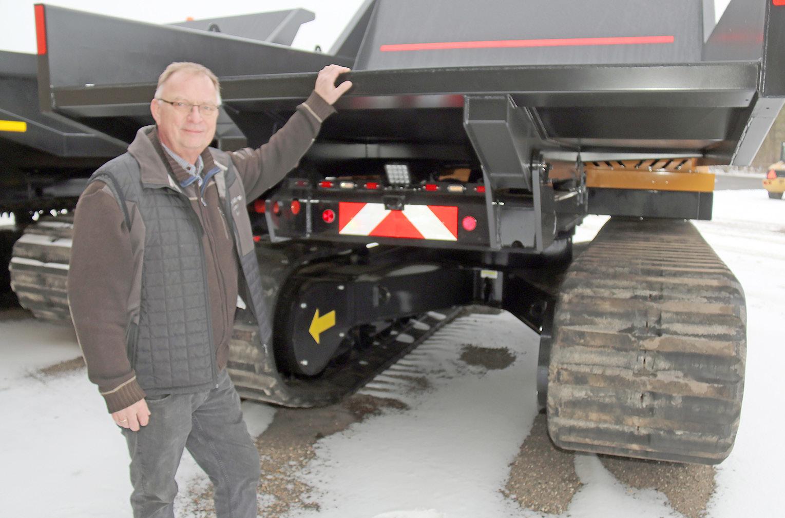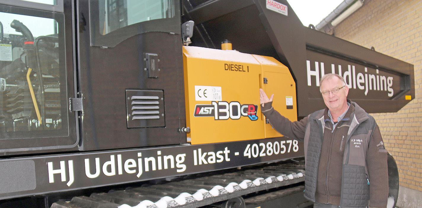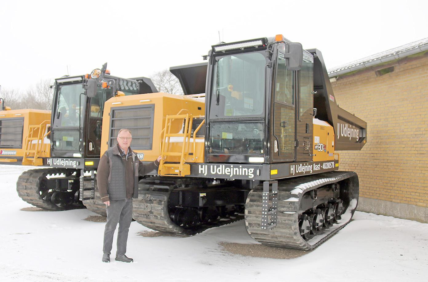 John Ulsted med en af de nye Morooka MST130CR, som netop er rullet ind i udlejningsflåden hos HJ Udlejning. Den danske forhandler, NEM, troede, at John Ulsted ville prøve en enkelt af de specielle japanske dumpere. Ikast-udlejeren kiggede på billederne, han fik fra Bauma, og købte to.