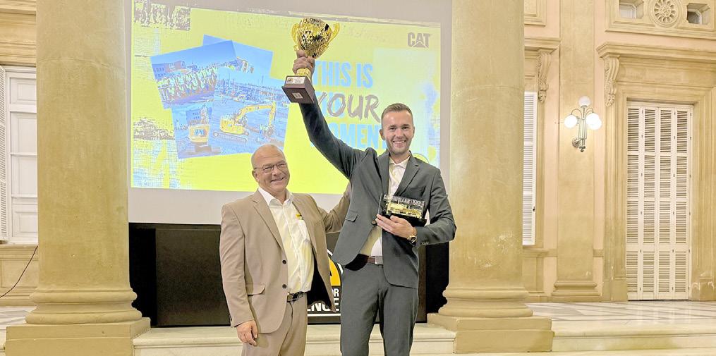 Nicolai Have Thomsen på podiet efter konkurrencen på Caterpillars demonstrationscenter i Malaga.