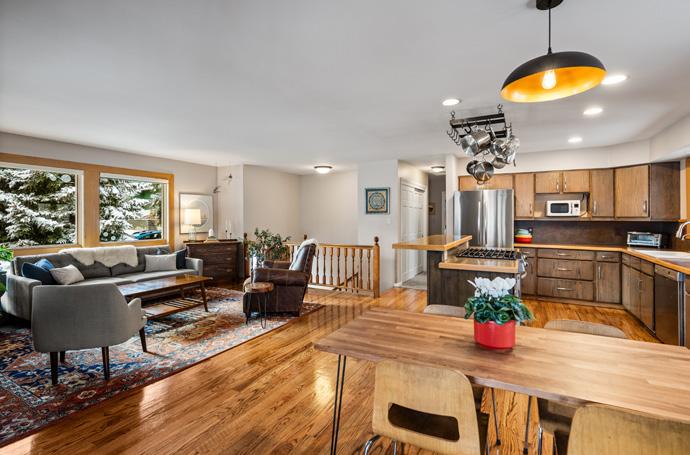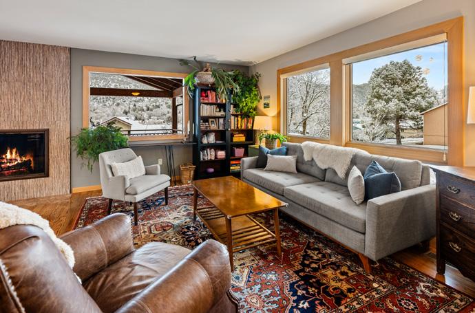 GLENWOOD SPRINGS Enjoy an open concept kitchen, dining and living area with wonderful views in this super well maintained home. The large covered deck expands your living area by over 300 square feet and will be your go-to outdoor living space 3 seasons of the year. In addition to the threebedrooms, the workout room could also become a 4th bedroom. There is a two-car garage and expanded off-street parking for your camper, RV and boat trailer. And last, but certainly not least, the beautifully landscaped flat yard has several sheds, a temperature-controlled solar greenhouse, raised bed garden, nice trees and extensive entry side gardens too.