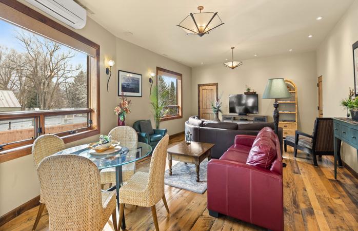ASPEN Experience the charm of downtown Aspen from this updated two-bedroom, one-bath condominium. Thoughtfully designed for modern living, this unit features a fully remodeled kitchen and bathroom, complemented by contemporary finishes throughout.