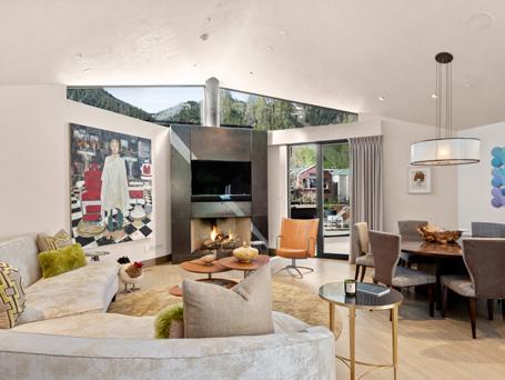 ASPEN Sophisticated tri-level duplex located in the heart of downtown Aspen. The dramatic entryway showcases the stunning floating staircase leading up to the upper level with vaulted ceilings, two living rooms each with a fireplace, gourmet chef's kitchen, dining room for eight and large outdoor patio with dining area, hot tub and lounge spaces. Max Occupancy 10. STR #083588
