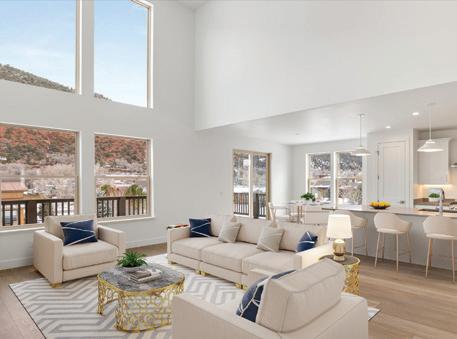 ASPEN T his home offers enhanced breathability, moisture regulation, fire resistance and a natural, healthy indoor environment. Sustainable building methods integrated with traditional lime plaster on the interior and exterior walls allows for moisture to pass through preventing moisture build-up, mold and fungal growth. The straw bale and post and beam construction enriches the beauty of this contemporary home. All three levels enjoy a spacious and open floor plan with natural light throughout. Plenty of open space and terraced grounds surrounded by healthy, mature trees, and breathtaking views of Mt. Sopris, Red Mountain, Aspen Mountain and Smuggler Mountain. Fifteen-minute walk to the center of Aspen!