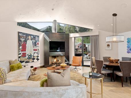 ASPEN Sophisticated tri-level duplex located in the heart of downtown Aspen. The dramatic entryway showcases the stunning floating staircase leading up to the upper level with vaulted ceilings, two living rooms each with a fireplace, gourmet chef's kitchen, dining room for eight and large outdoor patio with dining area, hot tub and lounge spaces. The gorgeous master suite and guest master suite are conveniently located on the main level. Max Occupancy 10. STR #083588