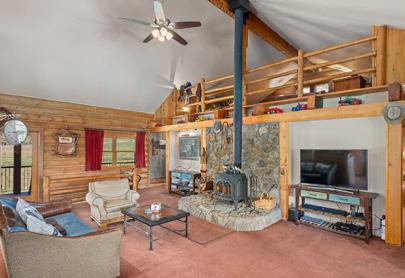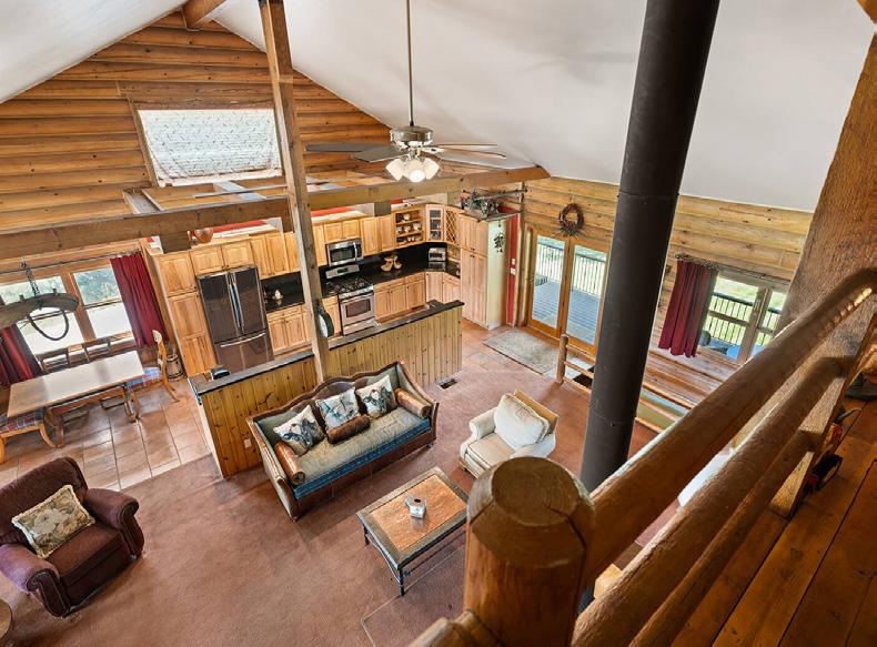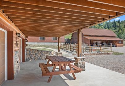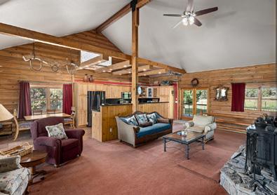• Log ranch house, ranch manager cabin, large horse barn and shop.