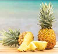 misma que alcanza para satisfacer las necesidades de todos los mexicanos, que hoy registran un consumo per cápita de poco más de 6 kilos. En cuanto a exportación, son Estados Unidos, Corea del Sur y España quienes más se llevan piña para sus arcas. Gracias a la bromelina, una enzima que fragmenta las proteínas y mejora la asimilación de aminoácidos, la piña es buena para la digestión, es antiinflamatoria y depurativa para el hígado; además de ser una gran aliada contra el cáncer y las enfermedades cardiovasculares. Sobra decir que es una gran fuente de vitamina C y hasta es alimento clave en el cuidado de la piel.