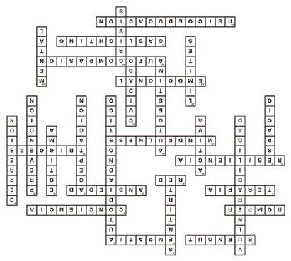 3. Agotamiento físico, mental y emocional causado por estrés crónico en el trabajo. / 4. En salud mental significa no minimizar el dolor de otros, tampoco basta con decir “échale ganas”. / 6. Acto de compartir experiencias de salud mental: ...el silencio./ 7. El primer paso para cuidar la salud mental es reconocer su importancia. / 9. Espacio profesional para hablar y sanar. / 10. Estado de alerta que se manifiesta con nerviosismo, miedo o pensamientos acelerados. / 14. Personas que brindan contención emocional: ...de apoyo. / 16. Habilidad para adaptarse y superar las adversidades emocionales. / 19. Estímulos que activan recuerdos dolorosos o reacciones emocionales intensas. / 20. Práctica de atención plena al momento presente./ 23. Reconocer que lo que uno siente es real y está bien: validación... / 25. Tratarse con amabilidad en lugar de autocriticarse. / 27. Manipulación emocional que hace dudar de la propia percepción. / 28. Difusión de información clara y confiable sobre salud mental.