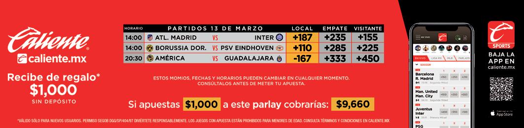 *Estos momios pueden cambiar en cualquier momento. Consúltalos antes de meter tu apuesta.