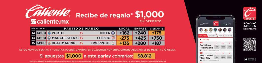 *Estos momios pueden cambiar en cualquier momento. Consúltalos antes de meter tu apuesta.