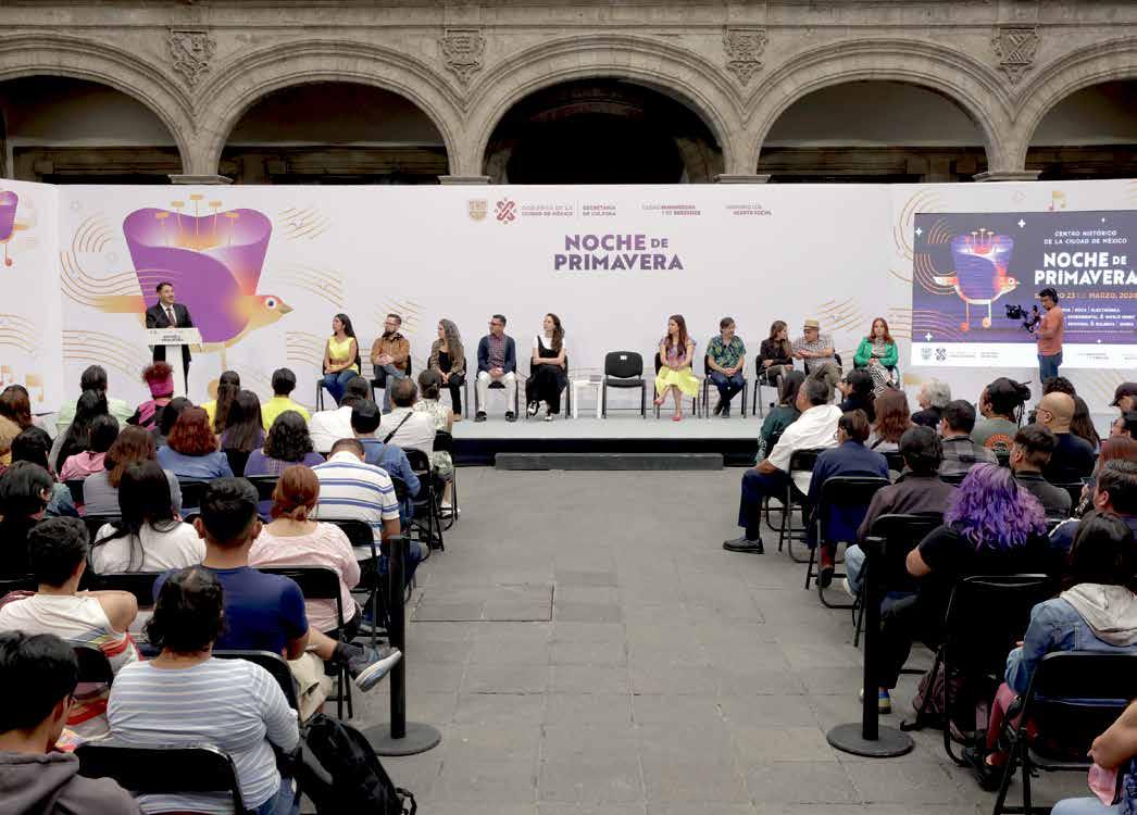 El jefe de Gobierno de la CDMX, Martí Batres, informó que el Festival Noche de Primavera 2024 se llevará a cabo el sábado 23 de marzo en nueve sedes ubicadas en distintos puntos del Centro Histórico, en donde se ofrecerán conciertos gratuitos con más de 150 artistas nacionales e internacionales con propuestas de rock, electrónica, jazz, regional, boleros, sonideros, ópera, circo y fusión latina. En conferencia de prensa, anunció que a partir de las 13:00 horas las personas disfrutarán en el Zócalo del 2° Gran Baile de Sonideras y Sonideros, el cual contará con la presencia de Sonido Fascinación, Sonido Súper Dengue, Sonorámico, Sonido Cubaney, Sonido La Dama, Discomóvil Canadá, Sonido Batichica, Sonido Pío Sensación Latina, entre otros. En tanto, la secretaria de Cultura local, Claudia Curiel, destacó que de los 45 grupos participantes en el festival, 22 están liderados por mujeres.