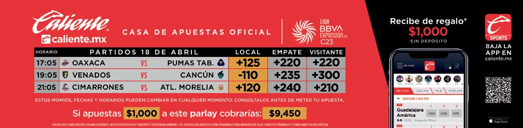 *Estos momios pueden cambiar en cualquier momento. Consúltalos antes de meter tu apuesta.